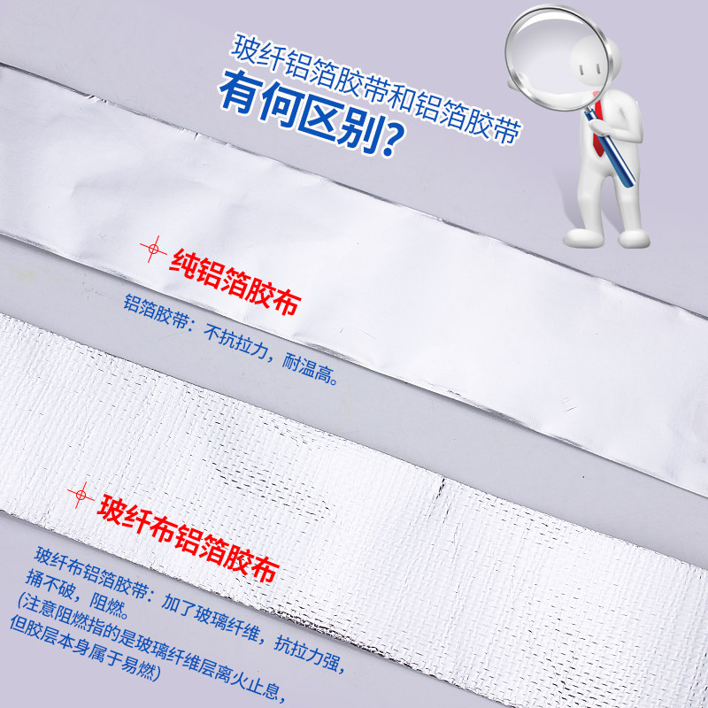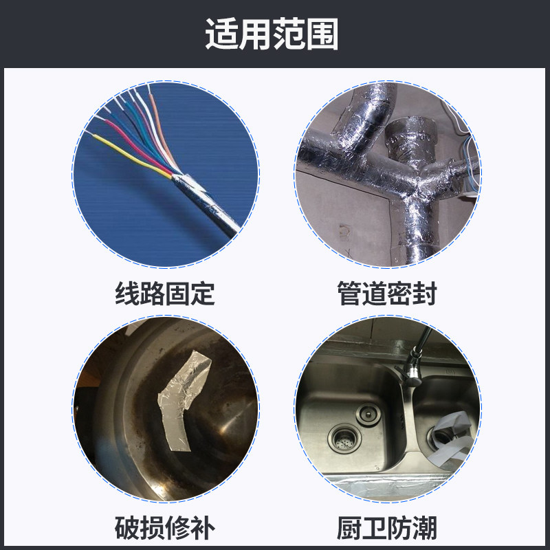铝箔胶带加厚耐高温玻纤布锡纸水管防水密封胶带补漏阻燃48mm25米