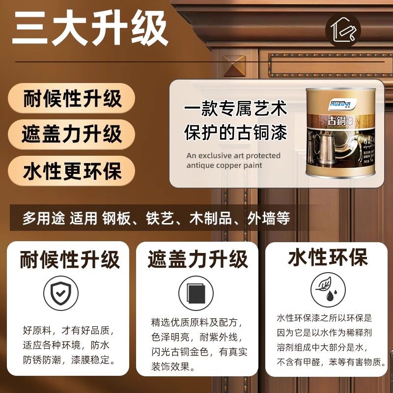 古铜漆手刷建材铁门防锈做旧仿古喷涂复古防水油性水性古铜金属漆