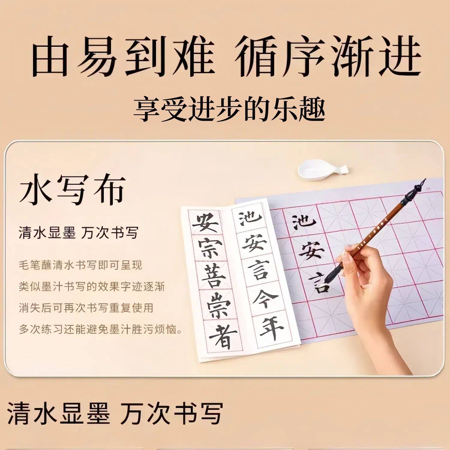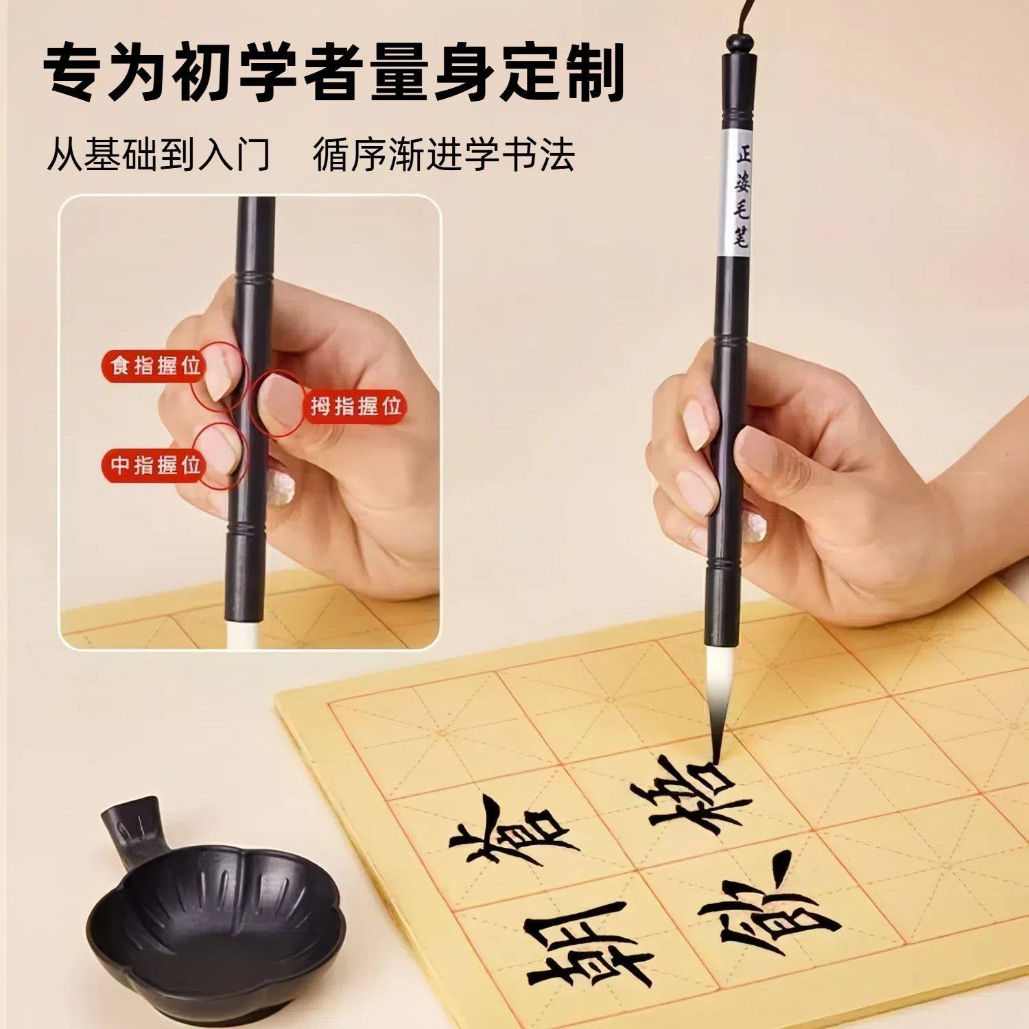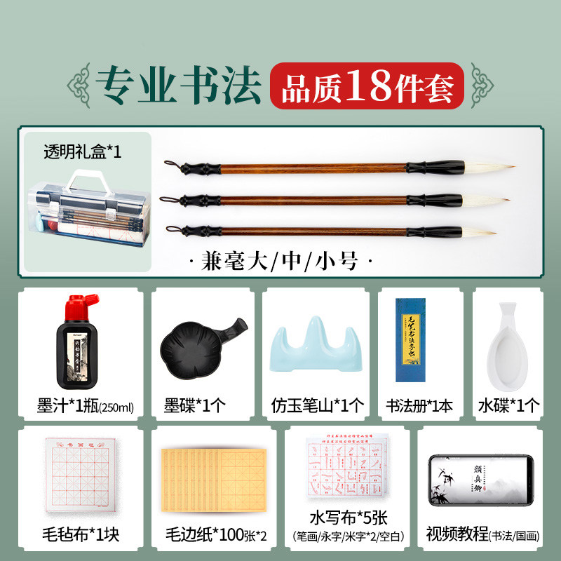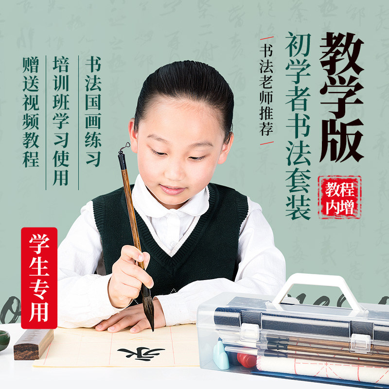 书涯轩毛笔书法专用初学者套装小学生三年级练字文房四宝入门装水写布毛边纸书法帖收纳工具毛毡布全套兼毫
