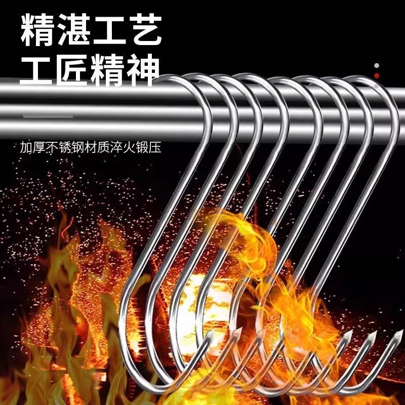 腊肉挂钩不锈钢S型晒挂烤鸭香肠猪肉勾子加粗S钩挂肉钩子承重实心