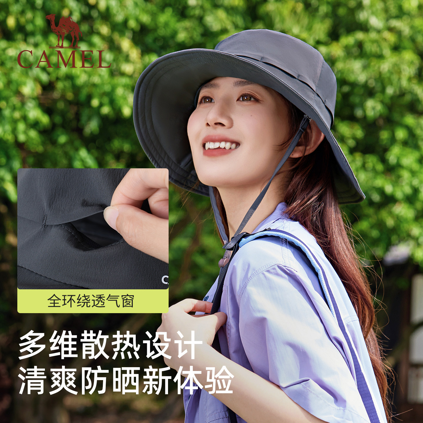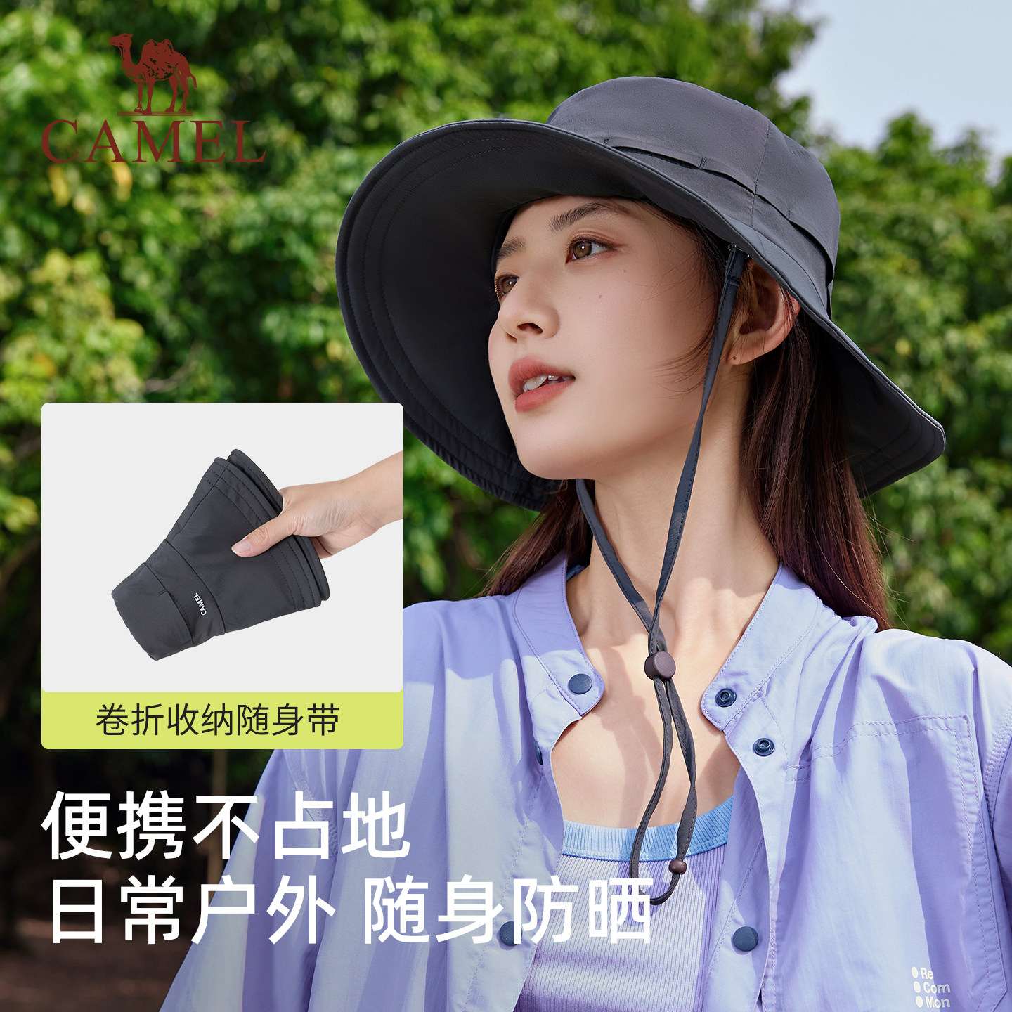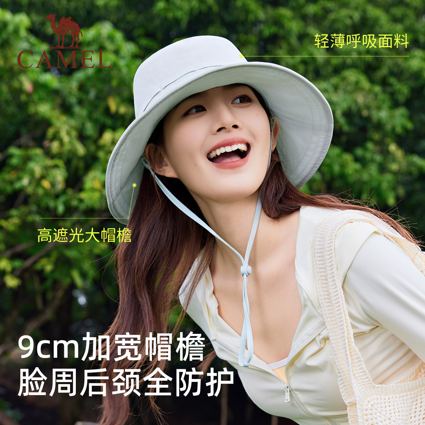 骆驼大帽檐防晒渔夫帽upf50+防紫外线女全脸遮阳凉感透气防晒帽子