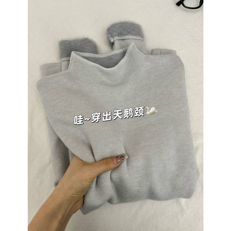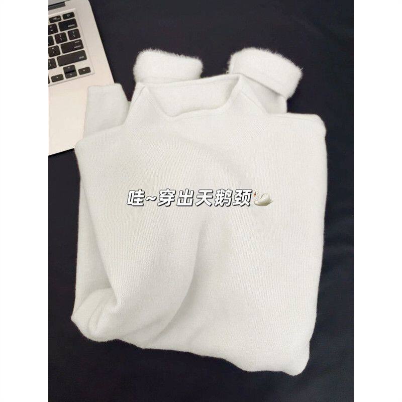 秋冬一体水貂绒半高领加绒加厚毛衣女中老年内搭长袖针织打底上衣