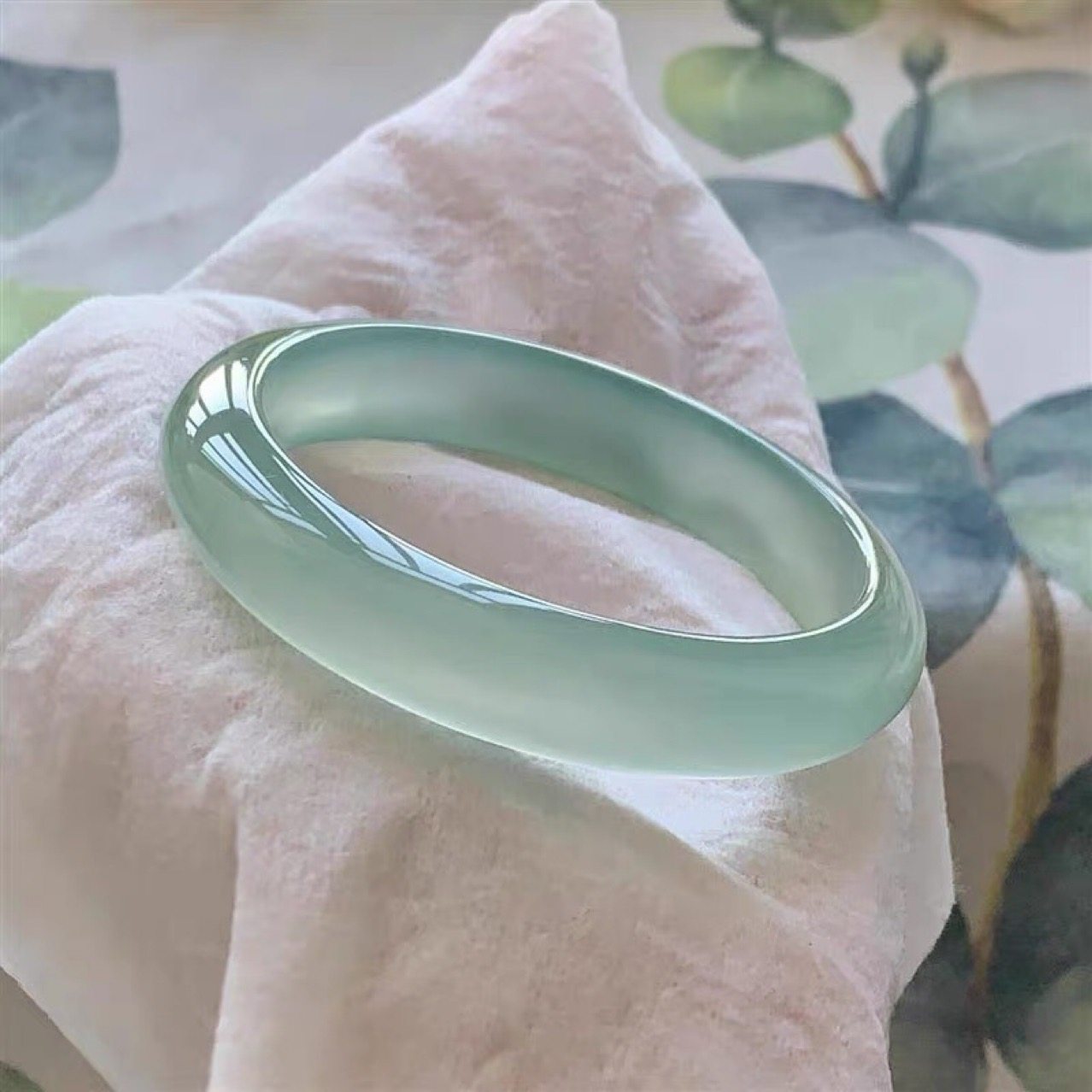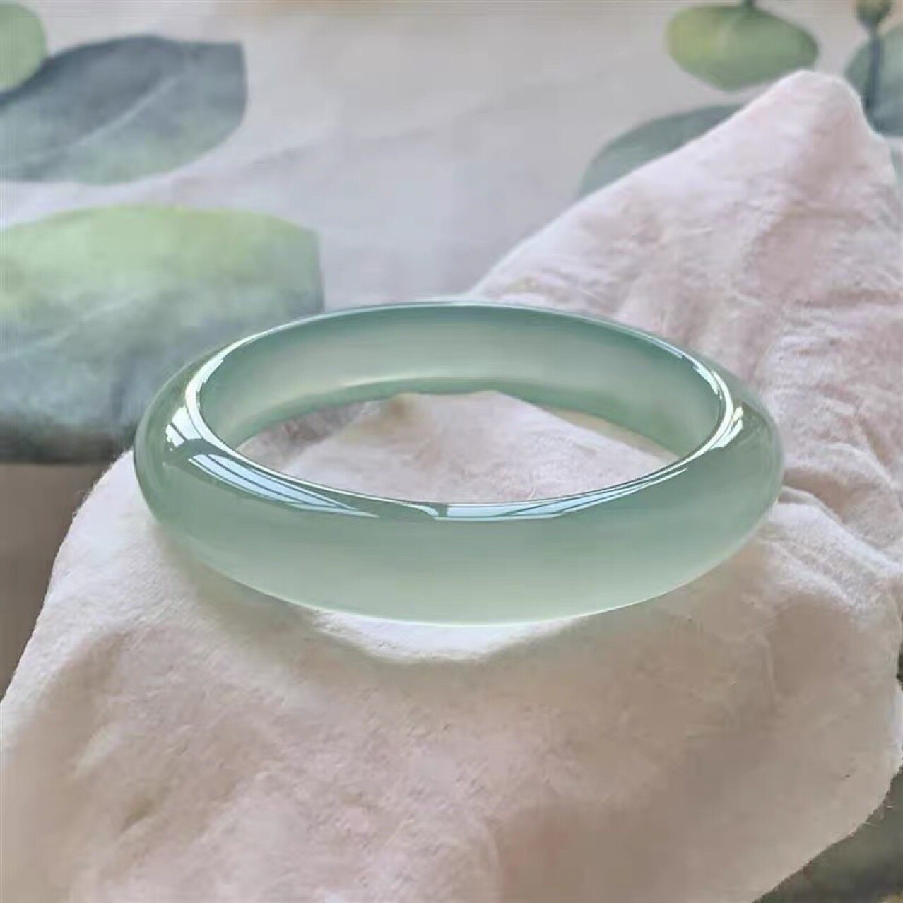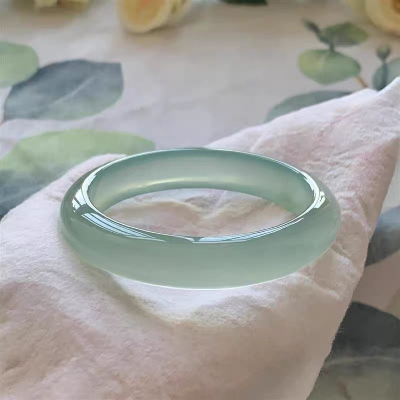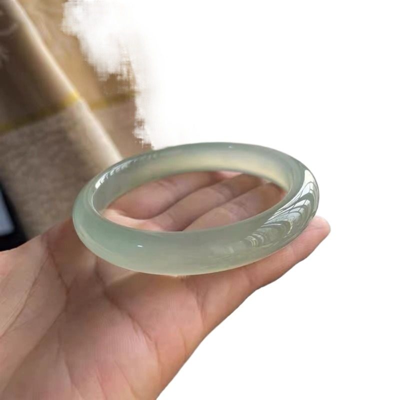 上等油青玛瑙高冰手镯女正品晴水绿天然玛瑙天青冻圆条玉镯