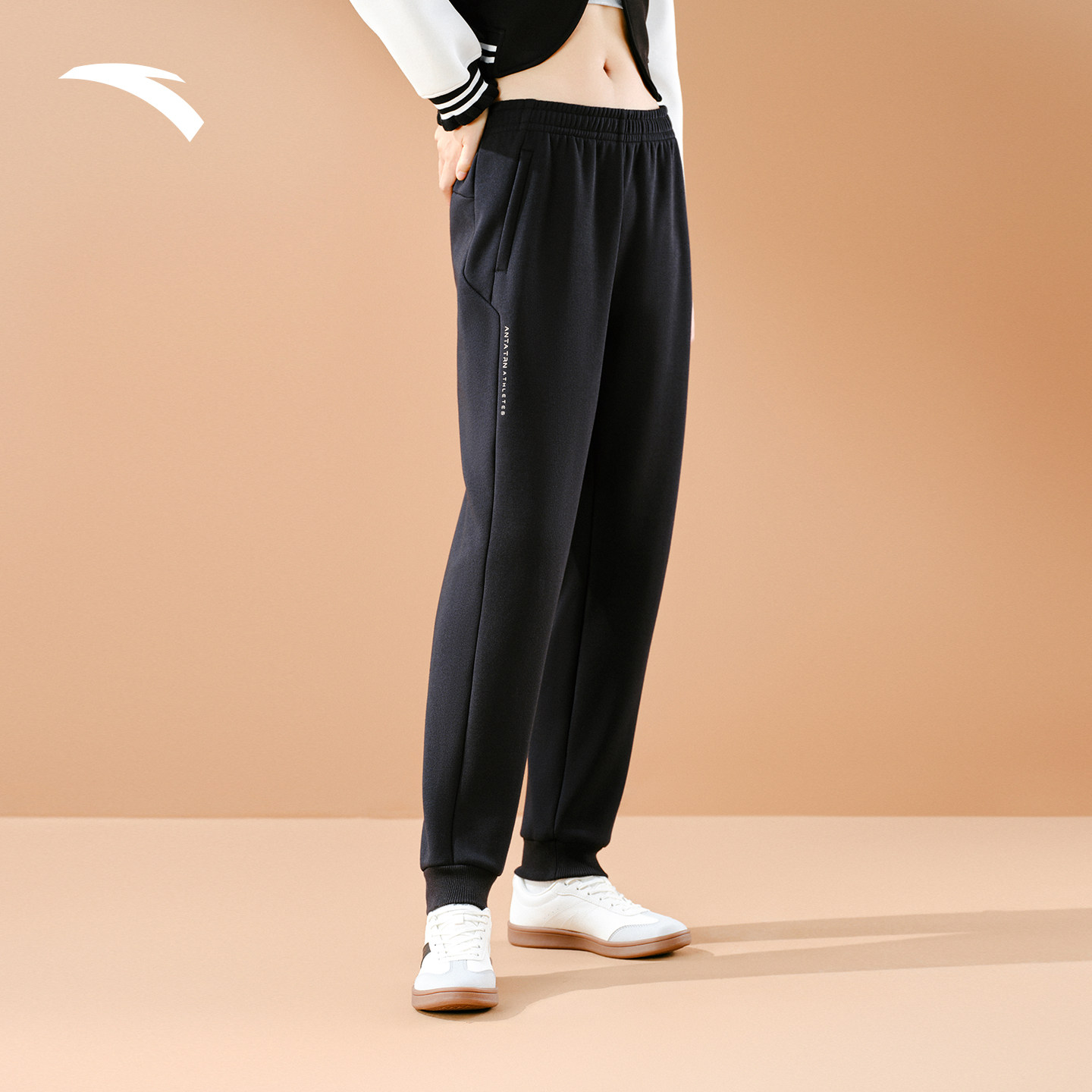 安踏运动长裤女士冬季加绒保暖针织束脚裤跑步卫裤162547312N