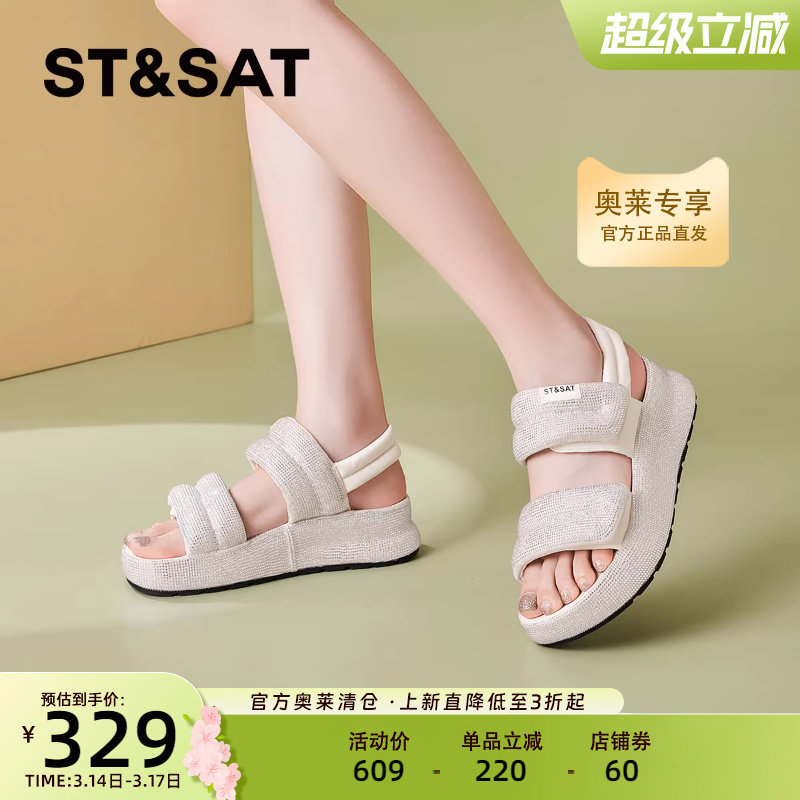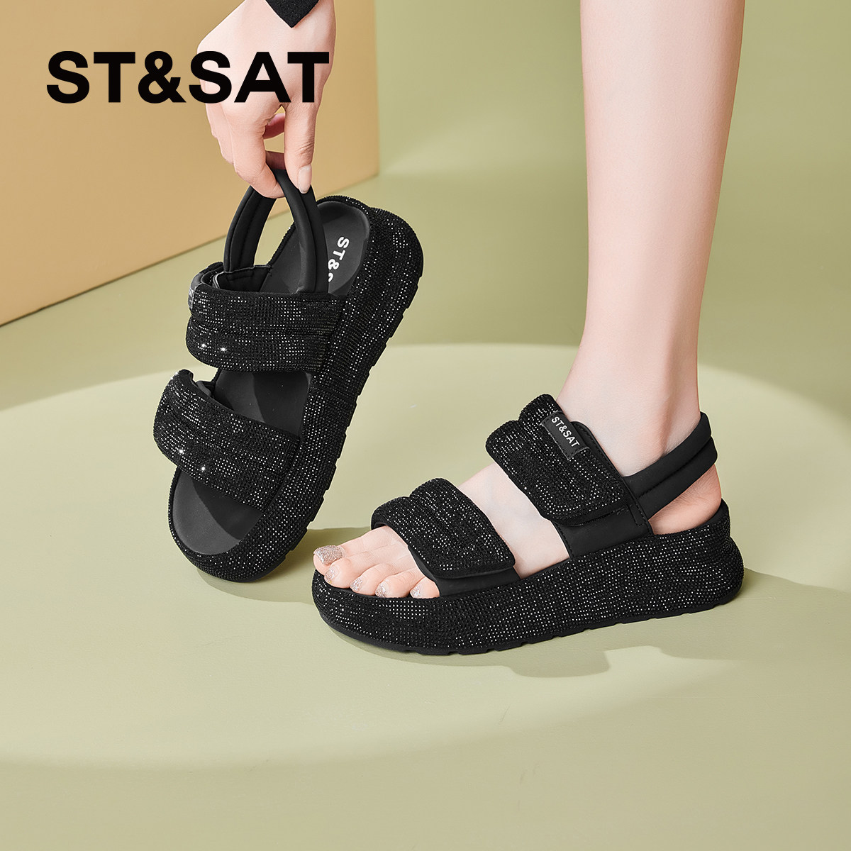星期六厚底增高运动凉鞋女款新款夏季小香风魔术贴亮片沙滩鞋