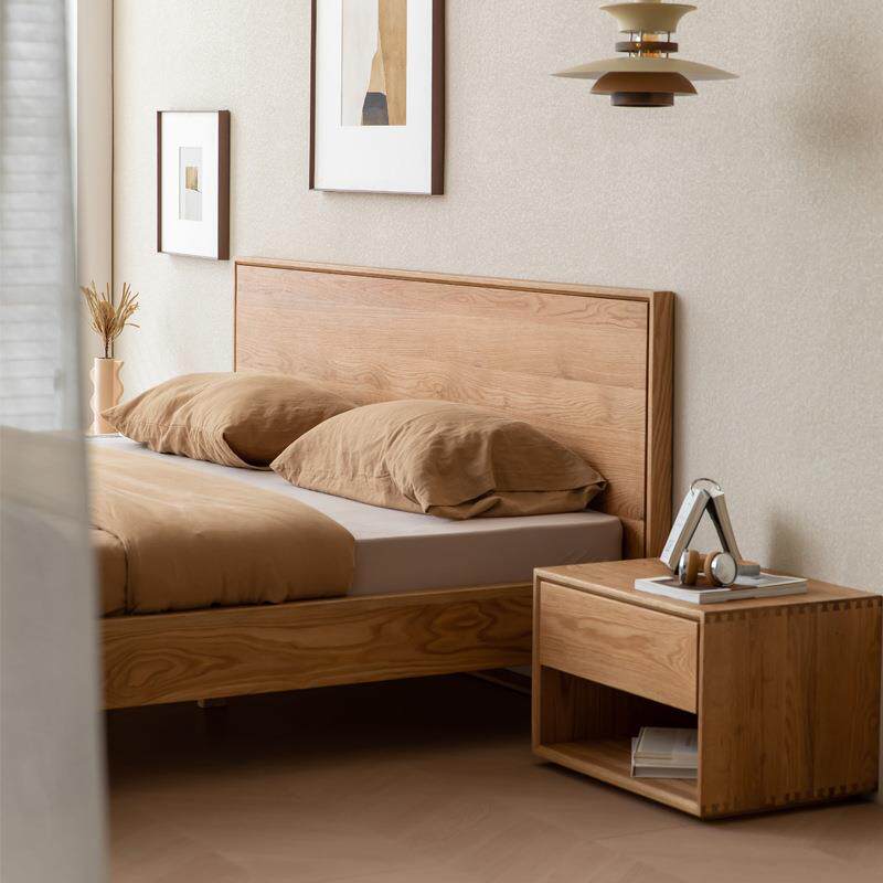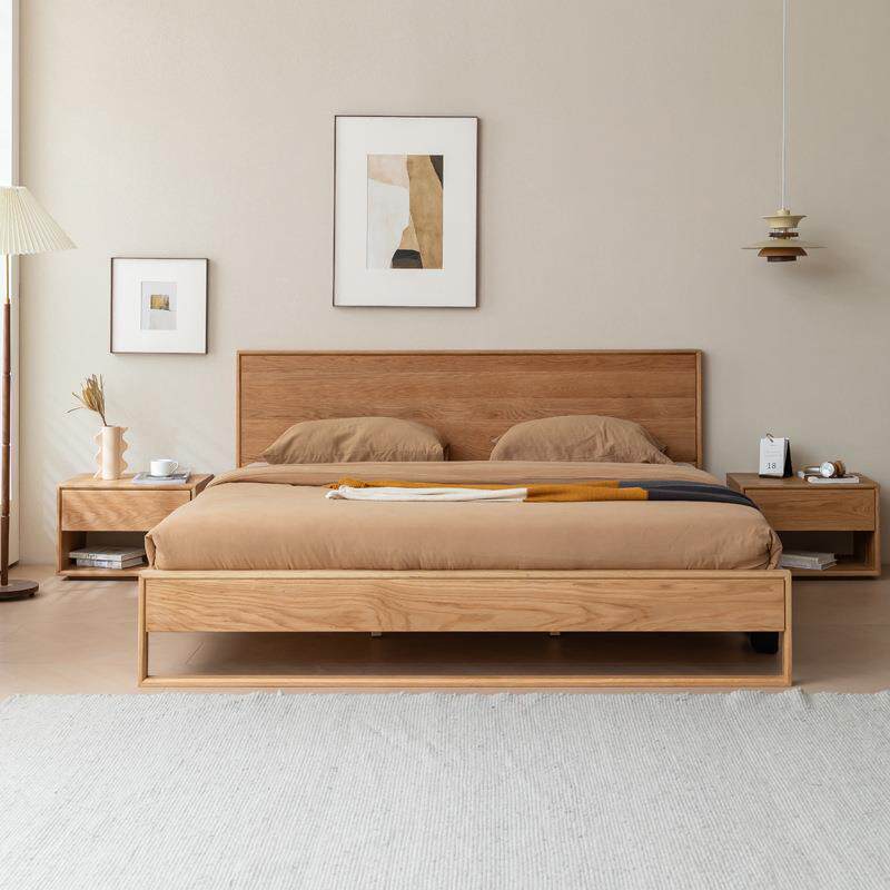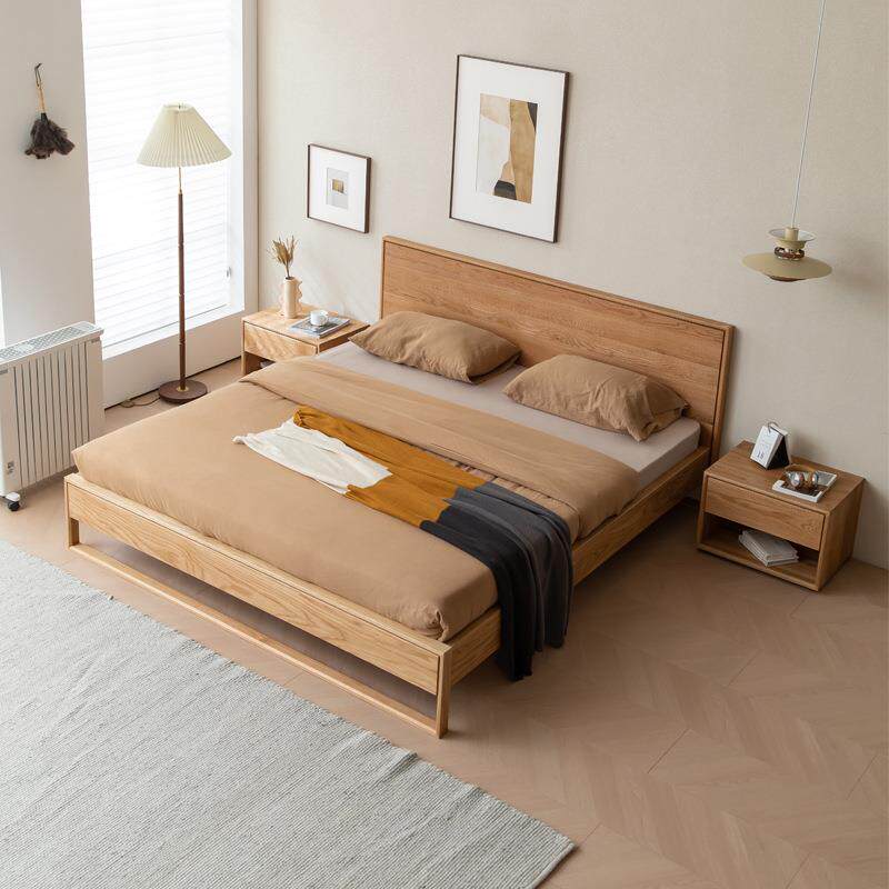 简约日式白橡木实木床卧室双人床1.5m婚床1.8米原木色大床大靠背