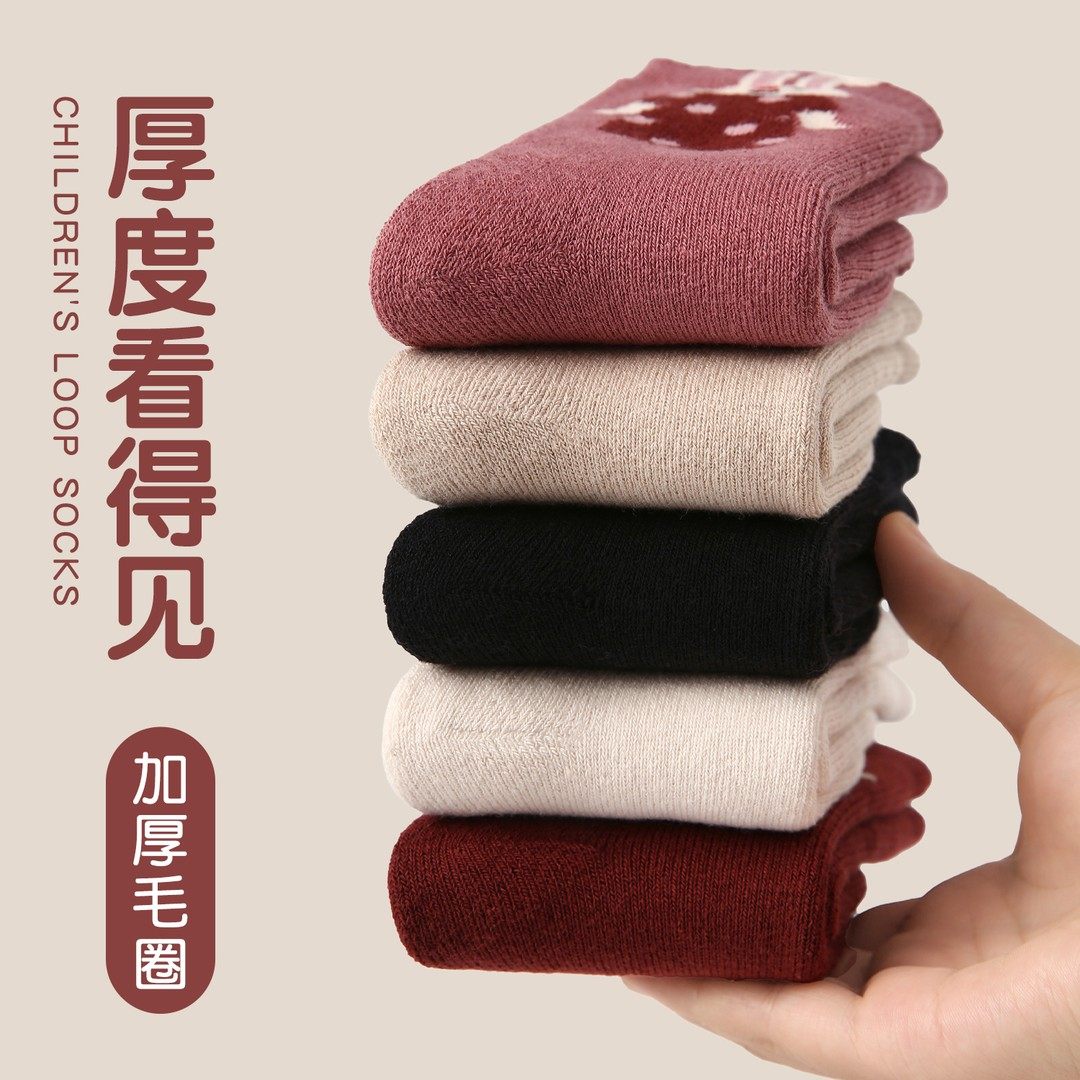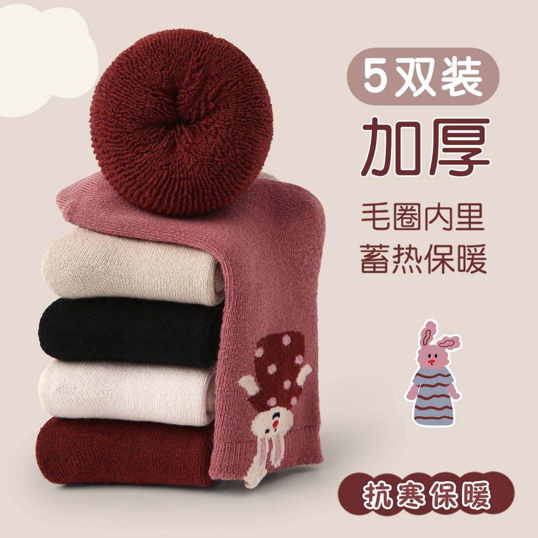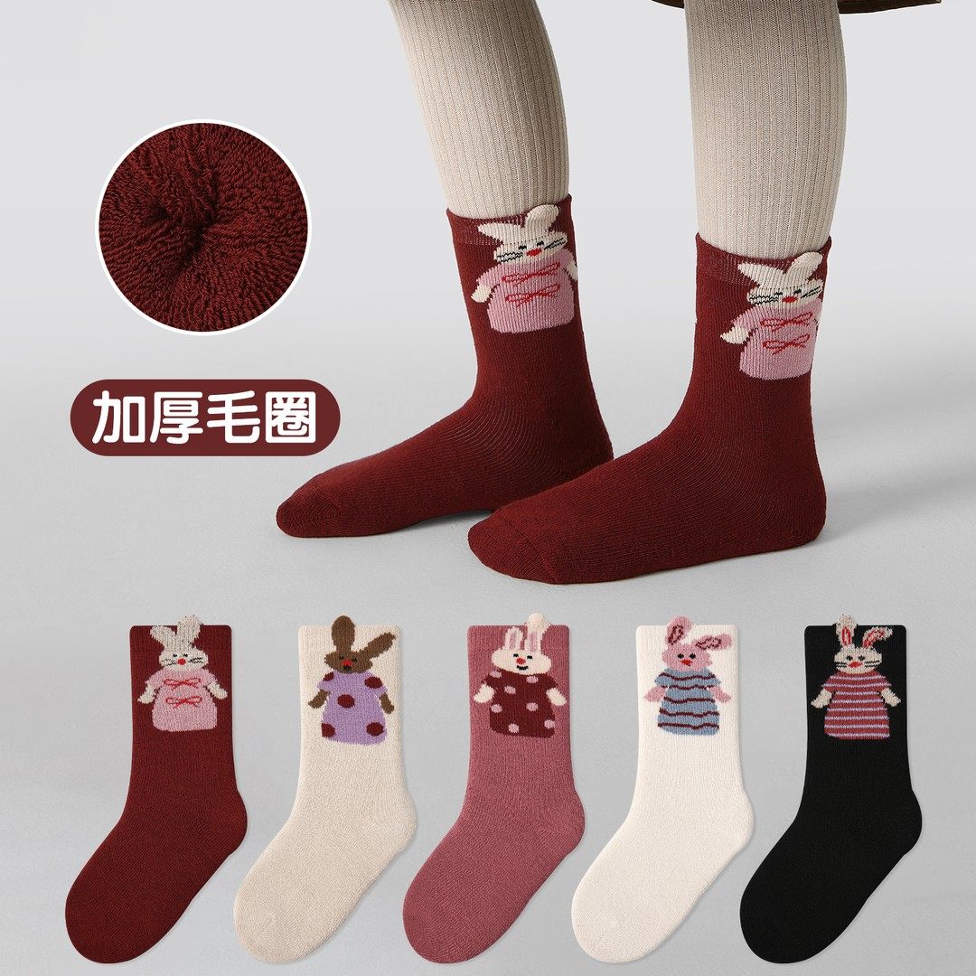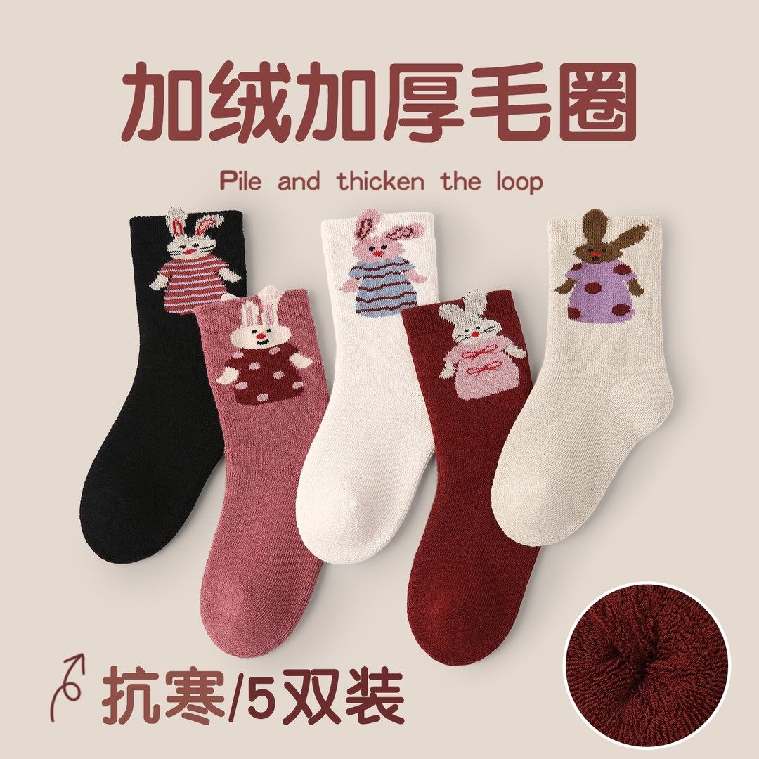 女童袜子秋冬款加绒袜儿童冬季加厚保暖毛圈袜宝宝卡通兔兔中筒袜