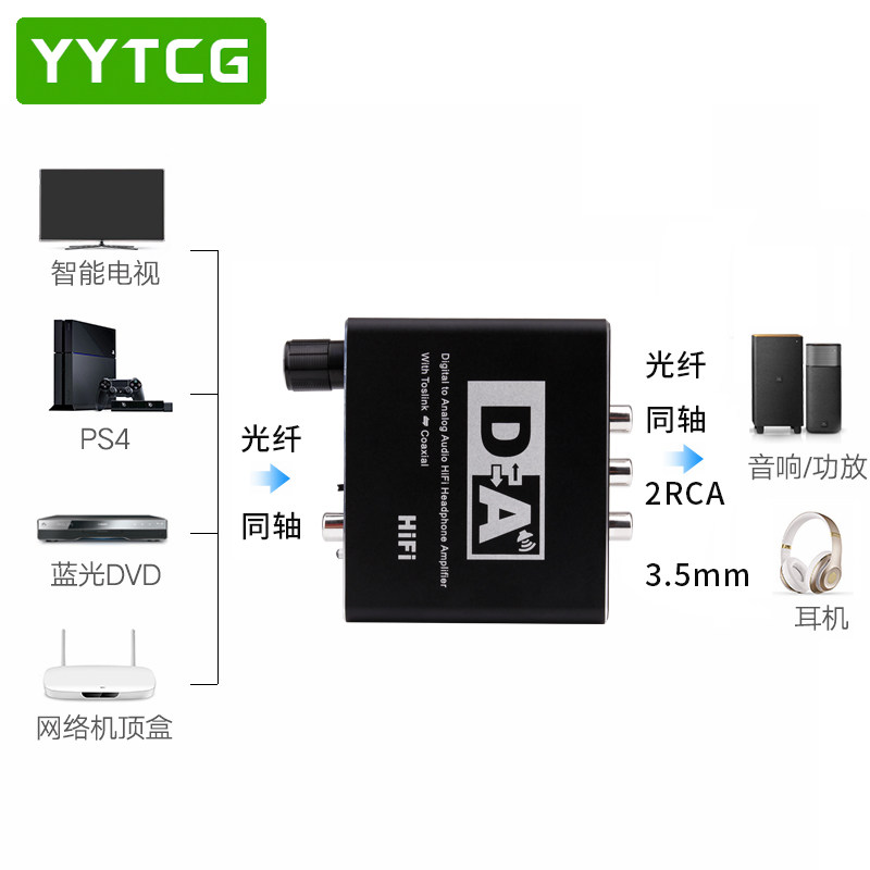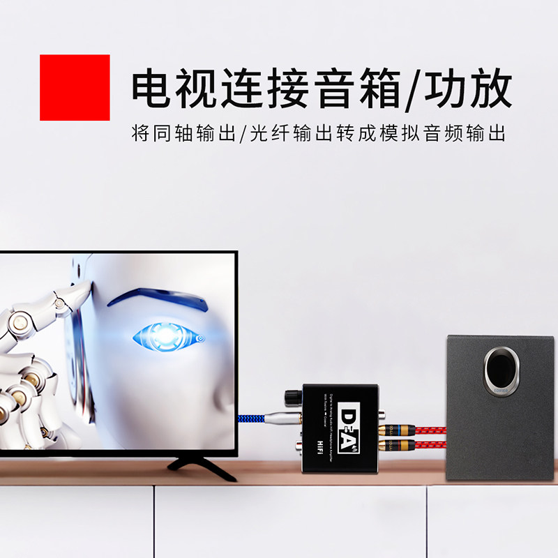 协德数字光纤同轴音频转换器机顶盒/安卓/电视/DVD/PS4/5数字光纤同轴转模拟音频解码器左右声道红白莲花音频