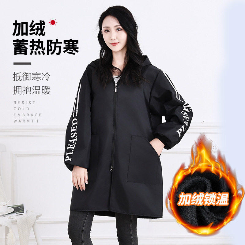 冬季加绒罩衣大人加厚长袖围裙防水韩版女时尚外套家用工作服定制