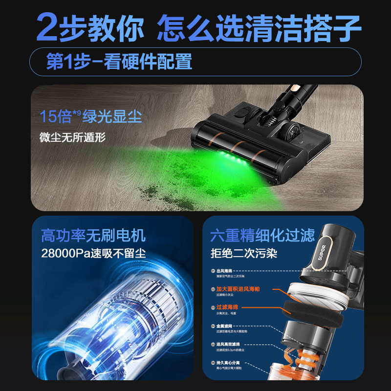 苏泊尔吸尘器家用手持无线大吸力强力除螨吸尘洗地机吸拖地一体机