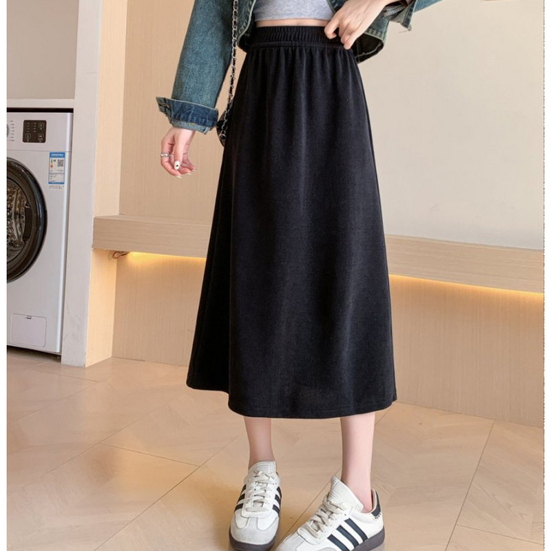 SIINSIIN直筒裙加绒2025年新款高腰收腹半身裙女黑色显瘦A字裙tk