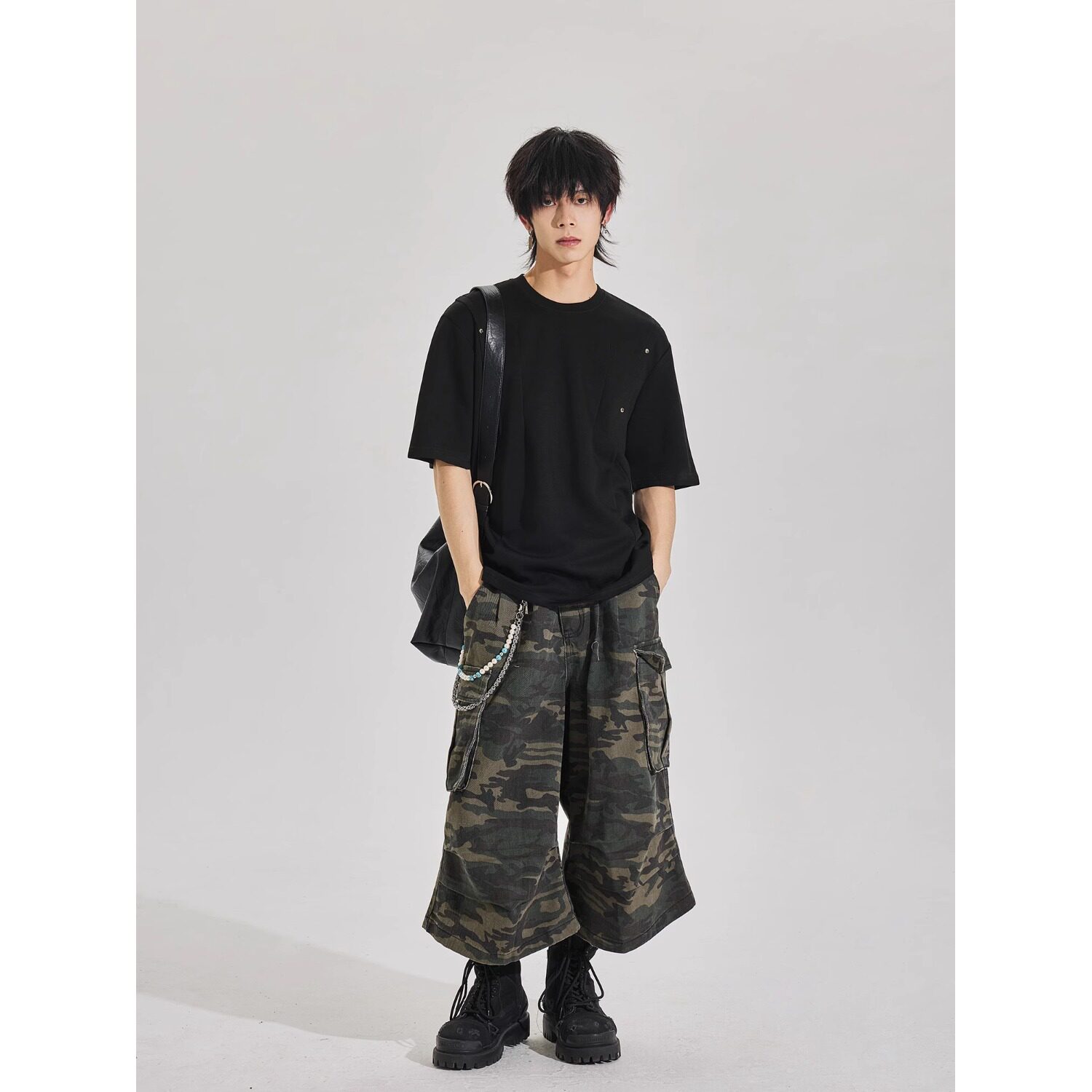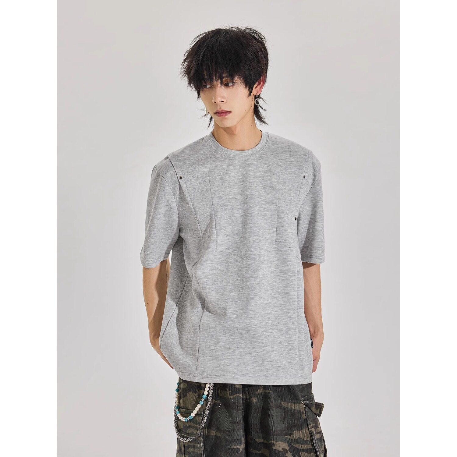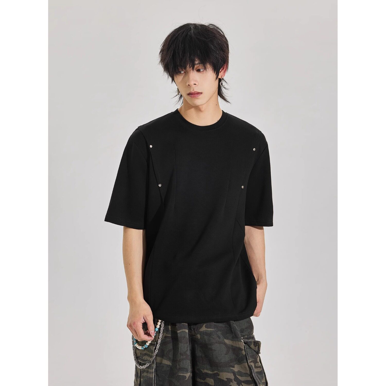 黑色太空棉铆钉解构短袖男款夏季boxy半截袖美式重磅正肩T恤灰色