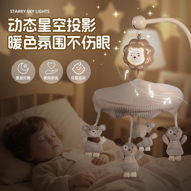 新生婴儿童床铃摇铃旋转床上挂件0-1岁宝宝安抚礼物悬挂支架音乐