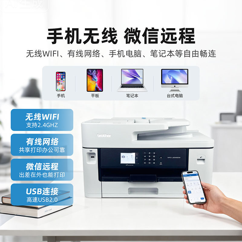 政府补贴兄弟A3彩色喷墨打印机J2340/3940/3540DW多功能无线办公