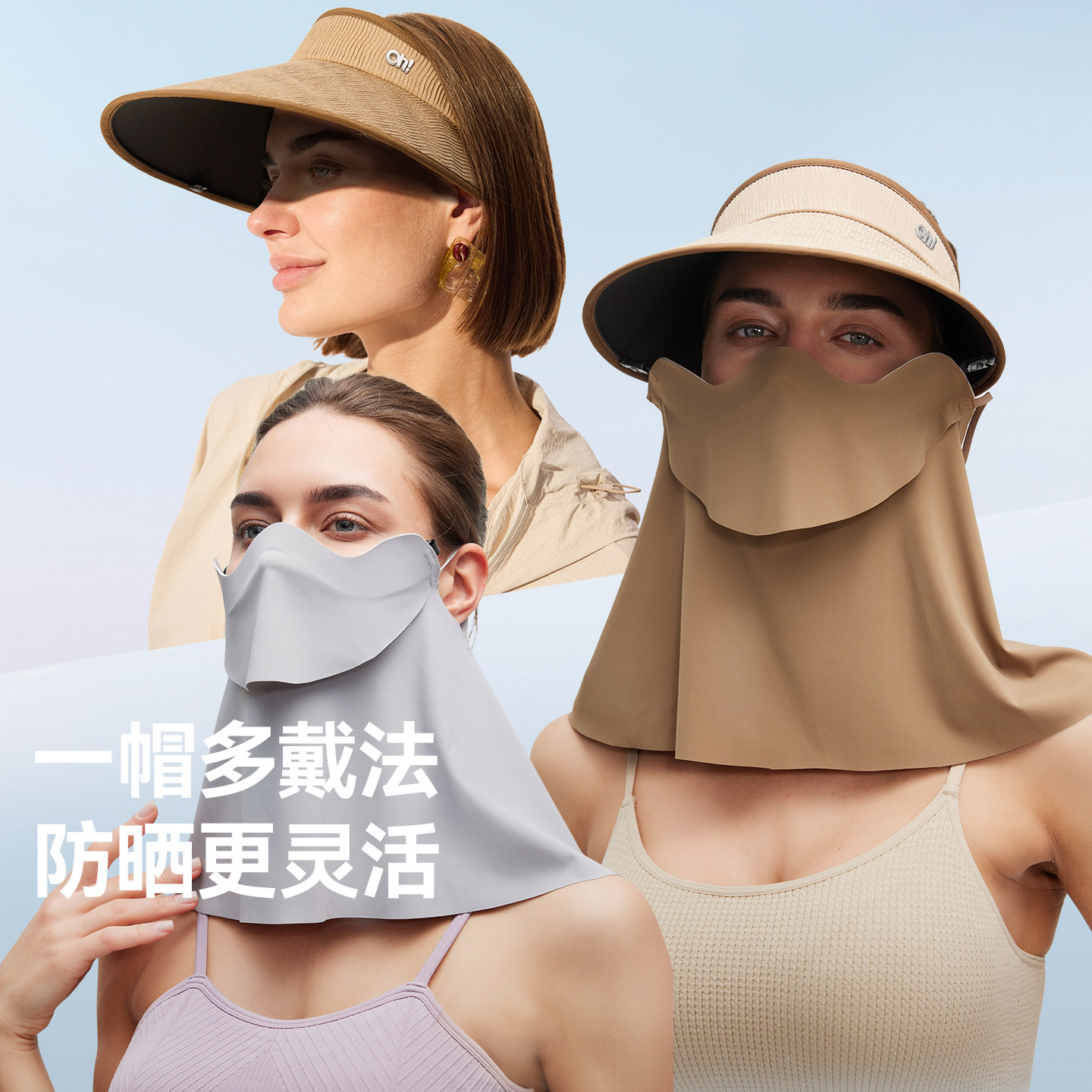 ohsunny防晒帽子面罩护颈一体2026新款遮阳大帽檐空顶帽不贴脸