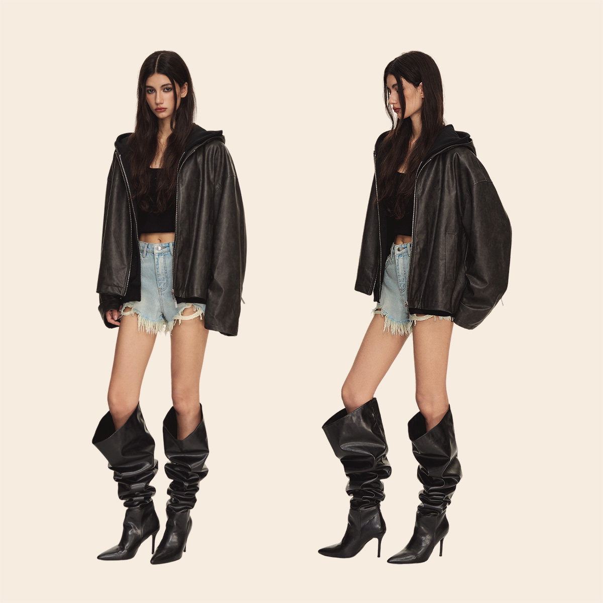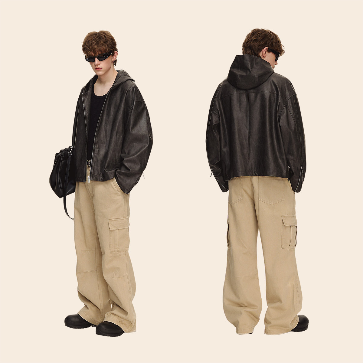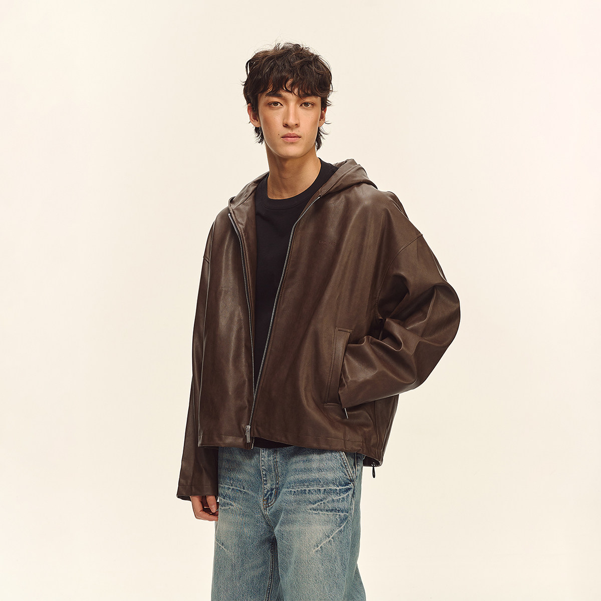 BODYDREAM复古做旧皮衣外套男街头廓形休闲通勤翻领夹克/挺阔抗皱