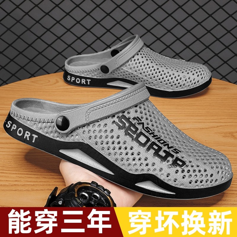 包头拖凉拖运动拖鞋男士外穿沙滩鞋防滑耐磨洞洞鞋潮新款外出厚底