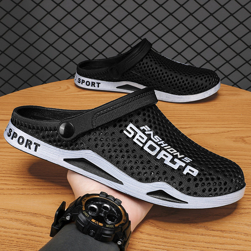 洞洞鞋男款夏季外穿2025新款沙滩厚底防滑防臭凉鞋包头半拖鞋男士