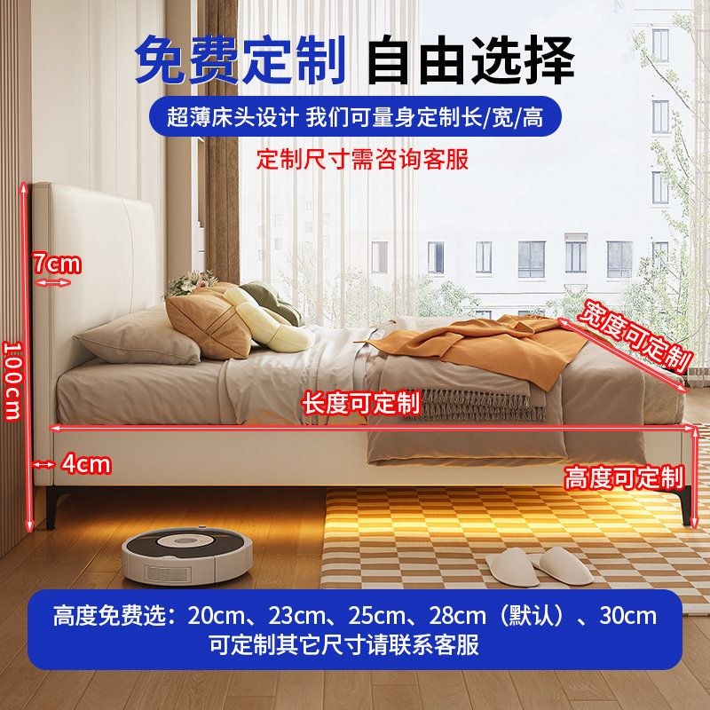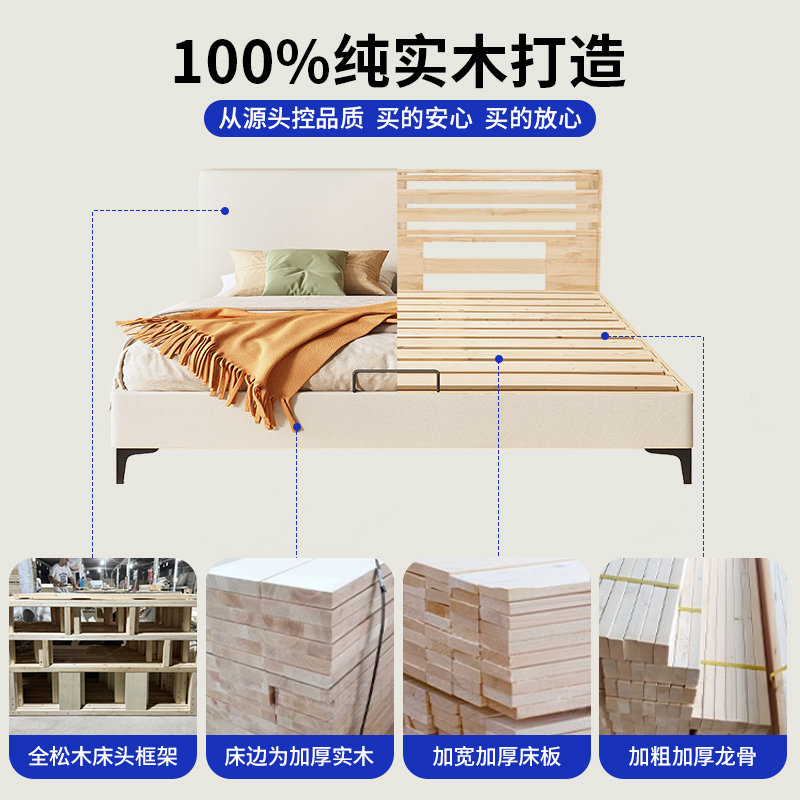 全实木超薄床头静音排骨架床小户型卧室齐边双人床可定制任意尺寸