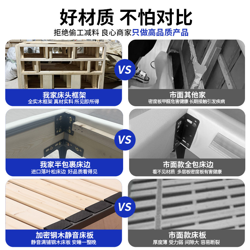 现代简约实木床1.8米主卧双人床1.5M单人经济型高箱储物大床