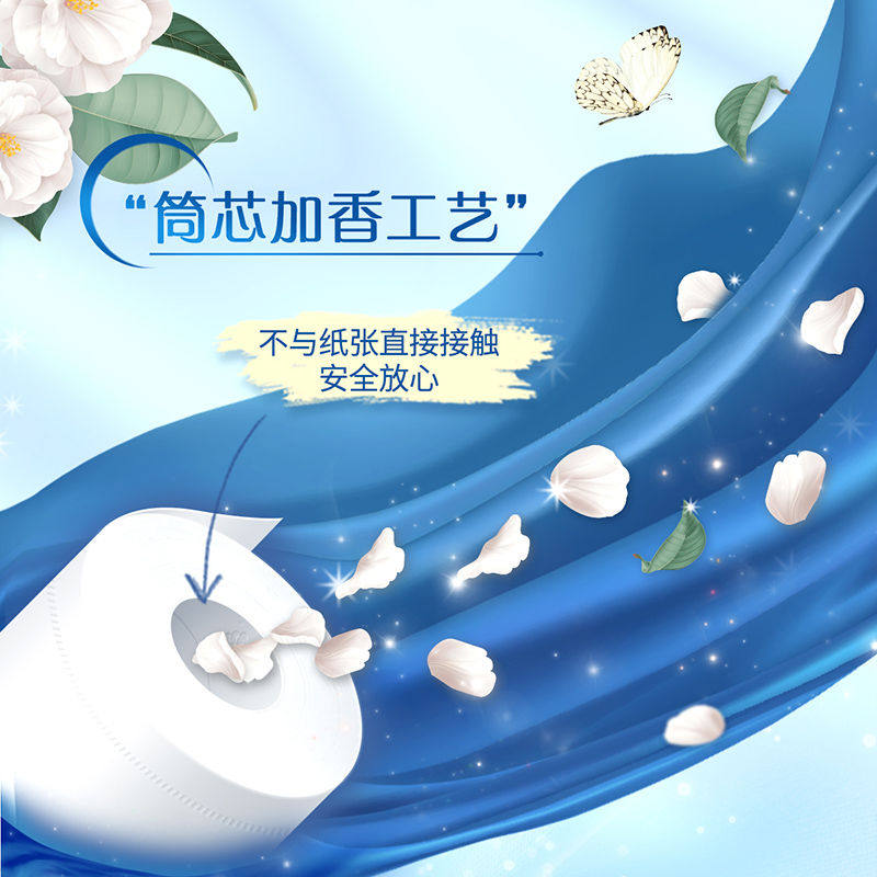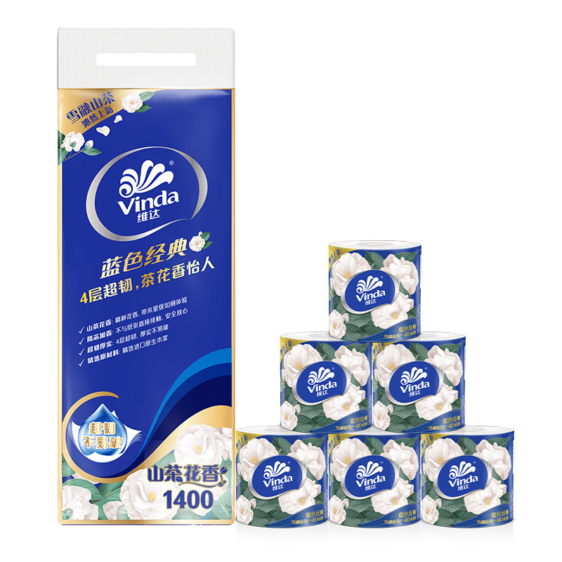 维达蓝色经典山茶花香卷筒纸140克4层加厚卫生间专用家用有芯整箱