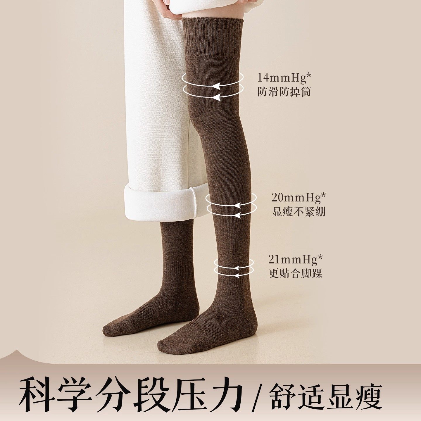 过膝袜子女秋冬羊毛长筒袜加厚保暖护膝大腿袜纯棉压力显瘦高筒袜