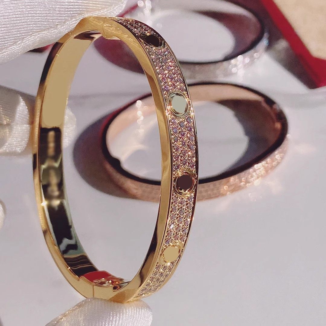 经典款手镯男女款18K玫瑰金镶钻情侣款轻奢手环不掉色白金黄金