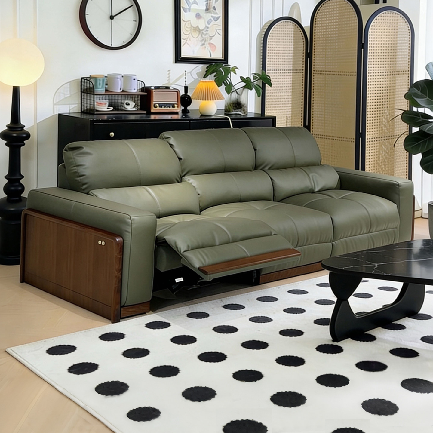 司朴意式轻奢黑胡桃木电动沙发客厅家用零靠墙实木功能真皮沙发