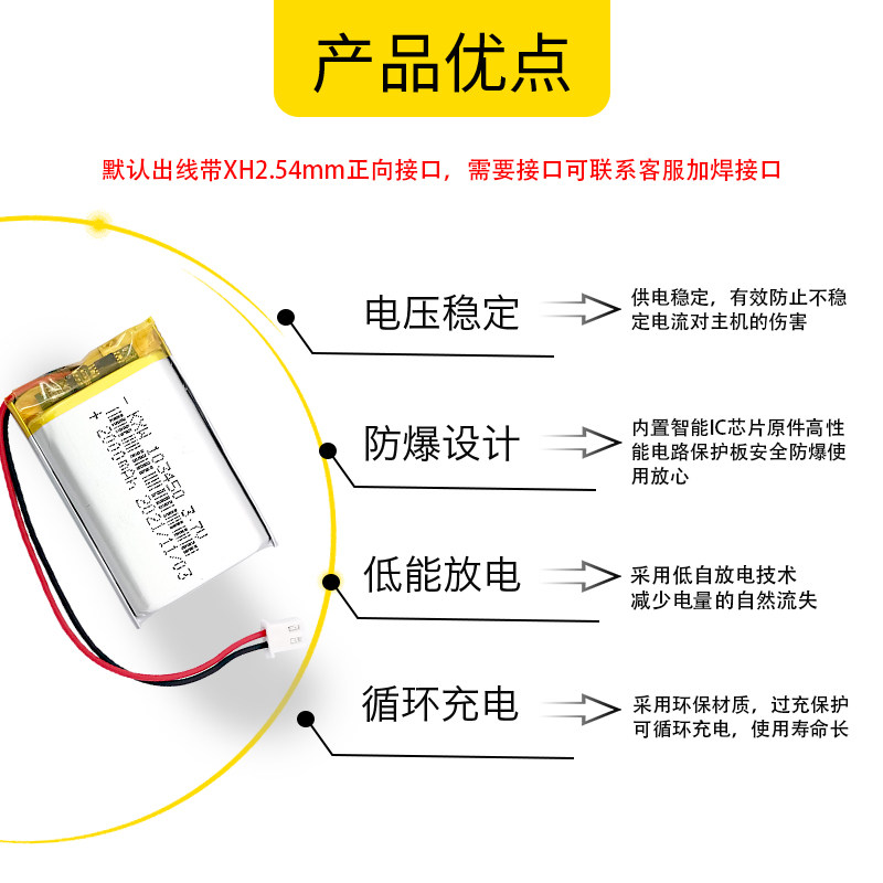 安全防爆 大容量2000毫安,带2.54MM正向插