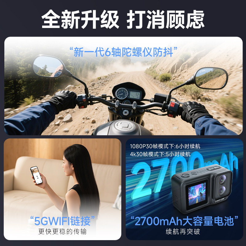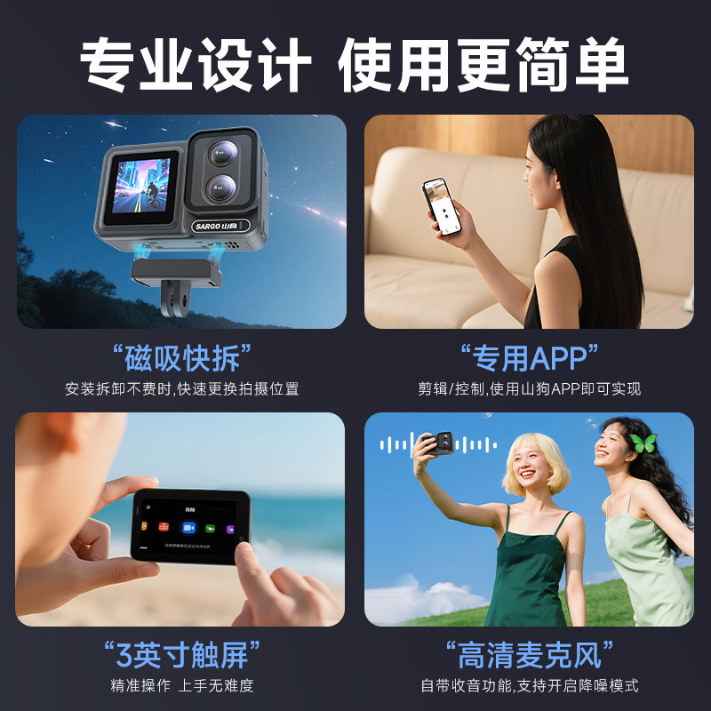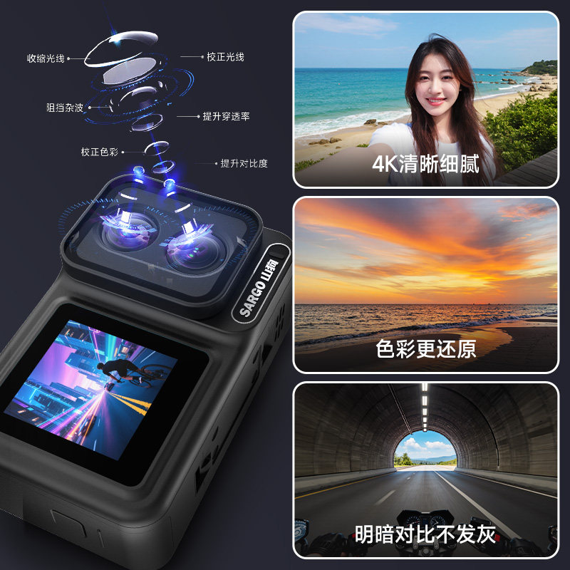 山狗P10运动相机双摄像头磁吸快拆摩托车行车记录仪Vlog非360全景