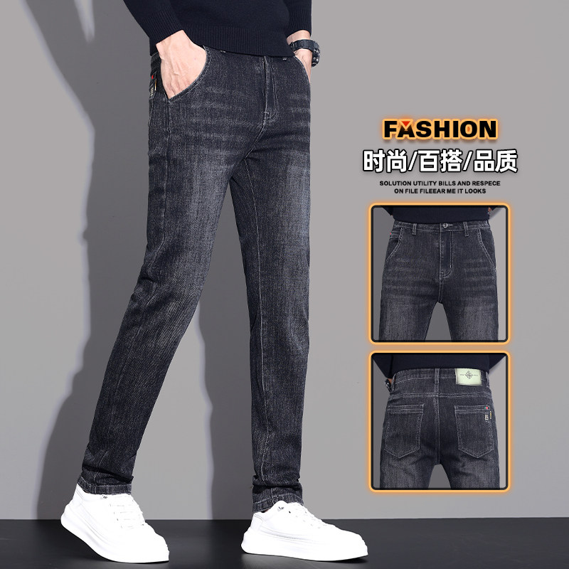 撤标撤柜(B)新款黑色牛仔裤男秋冬修身小脚弹力男士休闲长裤裤子