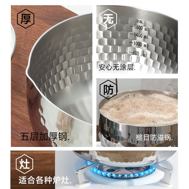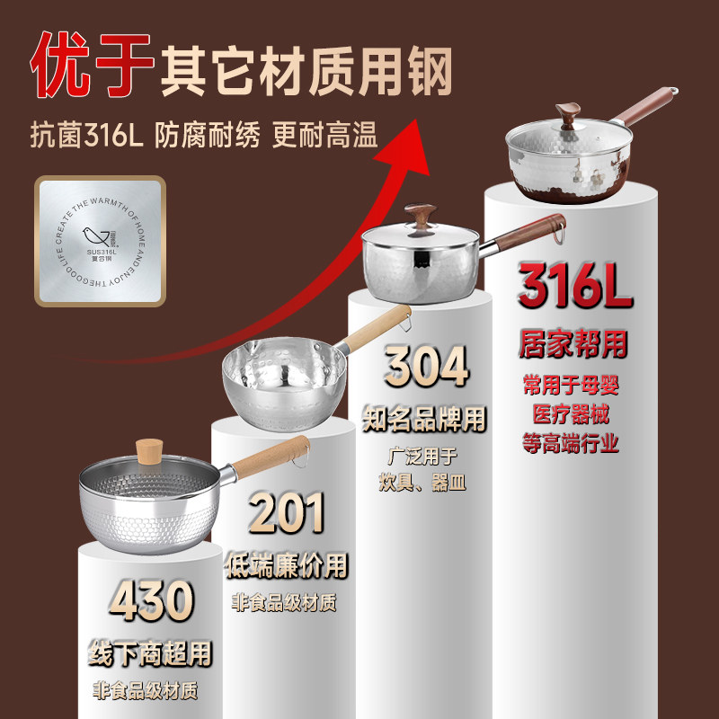辅食小奶锅正品316L不锈钢食品级家用加厚无涂层雪平锅汤锅泡面