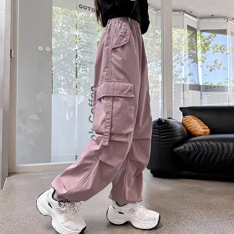 女童工装裤秋冬季加绒款2025新款中大童潮酷街舞直筒裤防蚊长裤子