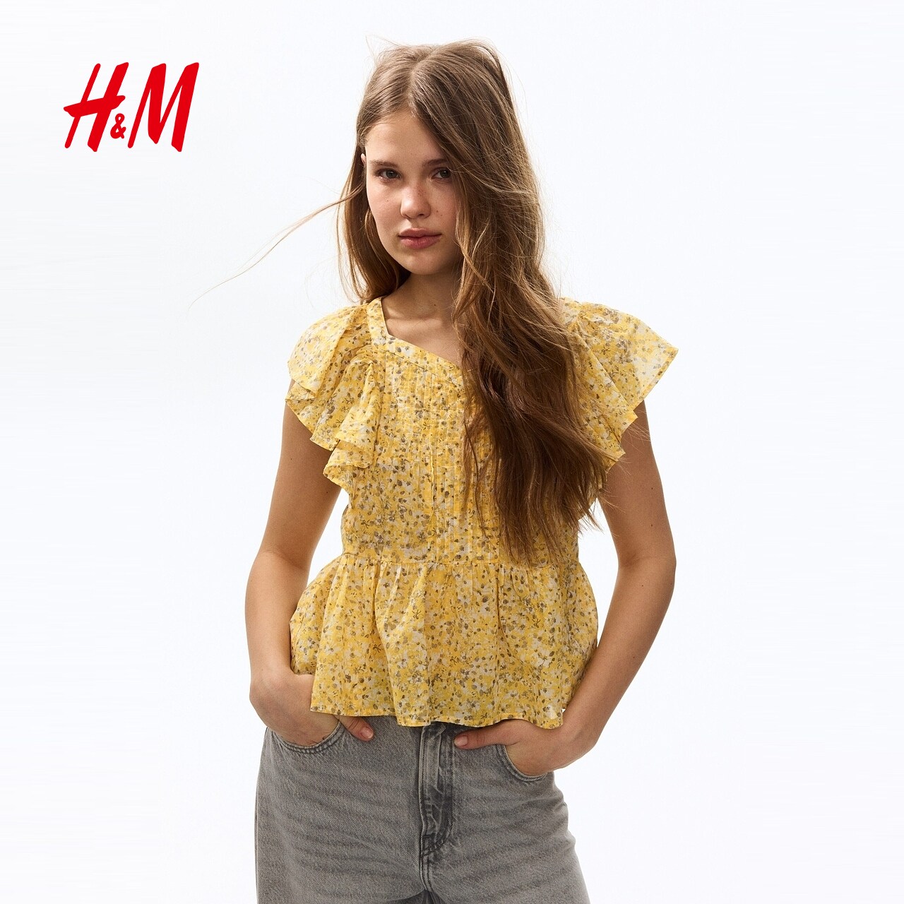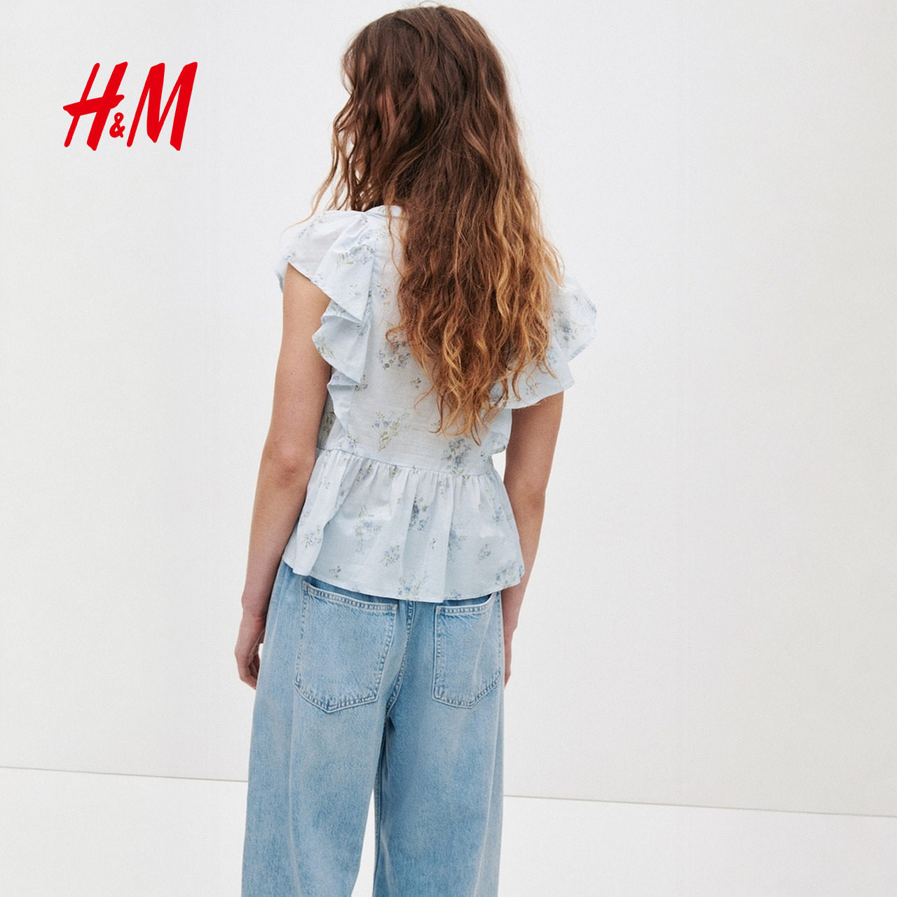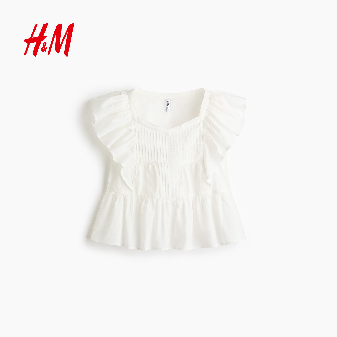 HM女装衬衫2026春季新款花卉多巴胺飞袖棉质浪漫繁复衬衫1316797