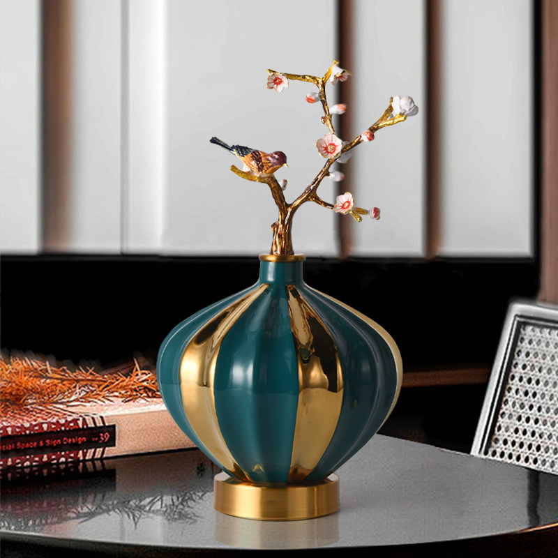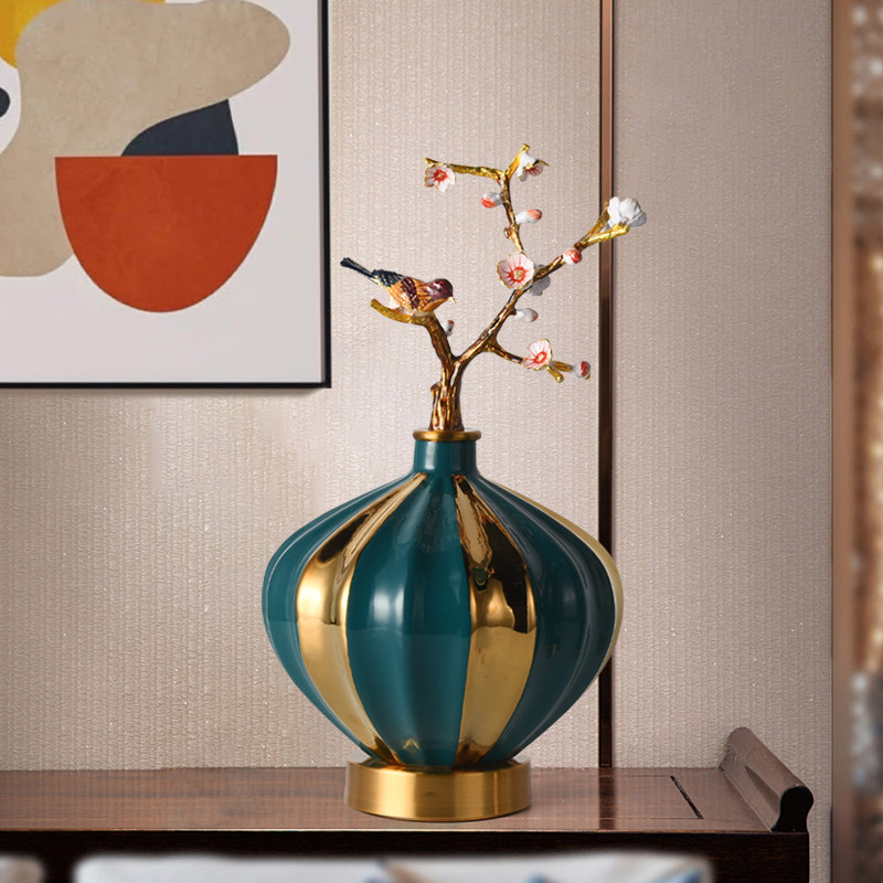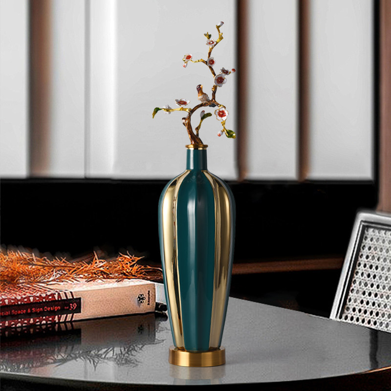 家用花器创意珐琅彩酒柜陶瓷摆件客厅玄关电视柜中式仿真花枝花瓶