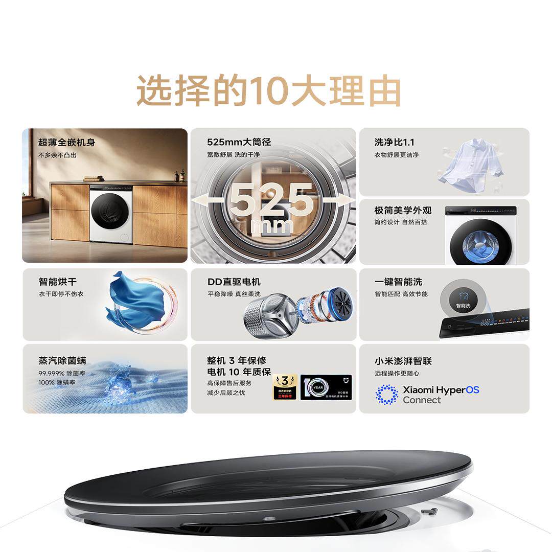【新品】小米米家超净洗烘洗一体机10kg家用全自动滚筒洗衣机冰白
