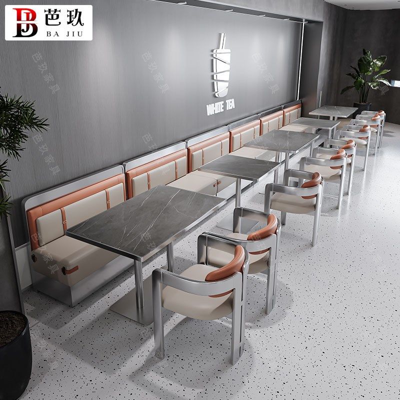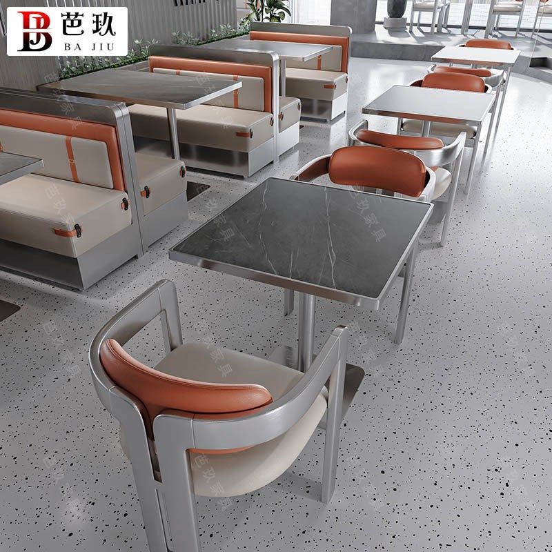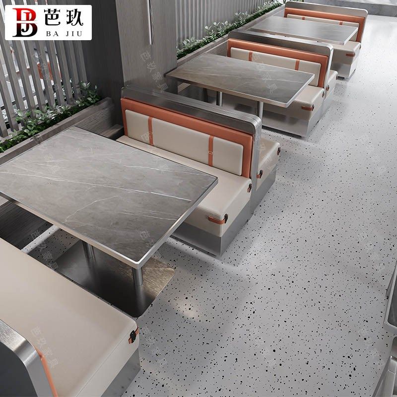 定制西餐厅半圆不锈钢卡座v沙发网红火锅店牛蛙店饭店岩板桌椅组