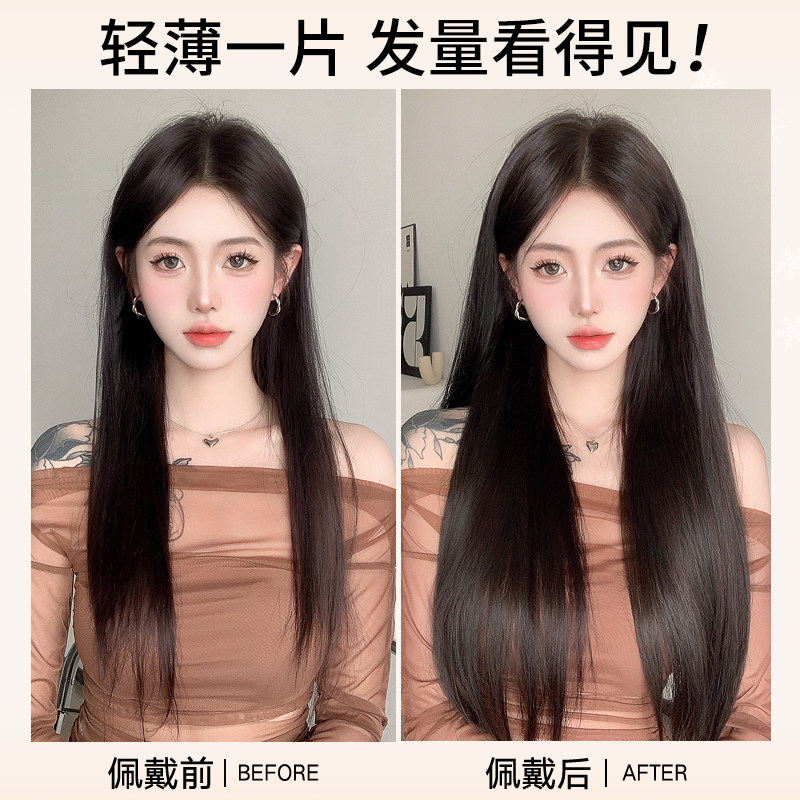 假发片一片式超轻薄增发量蓬松黑长直仿真发小片式隐形无痕接发片