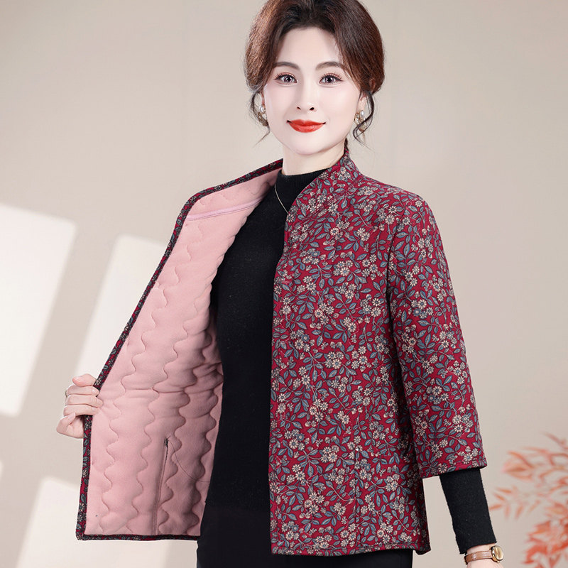 妈妈秋冬装德绒保暖棉衣短款加厚内胆中老年人女薄款小棉袄可外穿