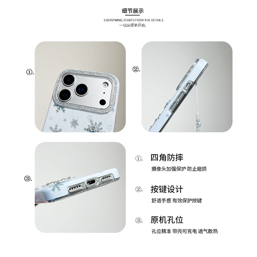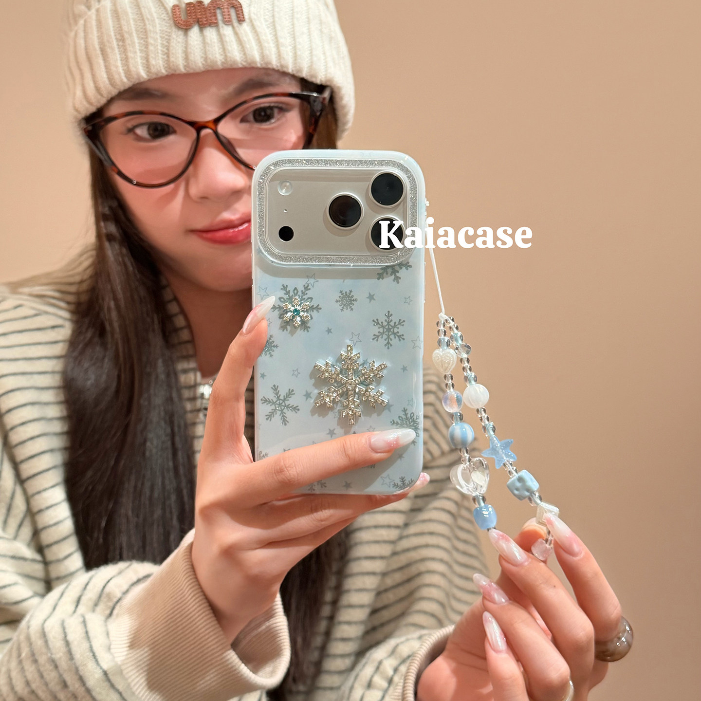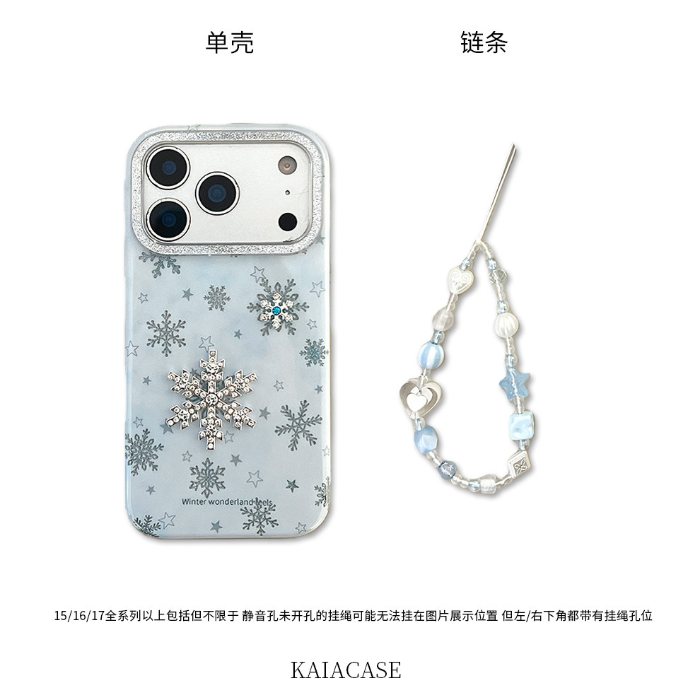 kaia秋冬ins奶蓝色立体水钻雪花适用苹果17promax手机壳iphone16pro新款15女14pro带链条15pro全包防摔手机套