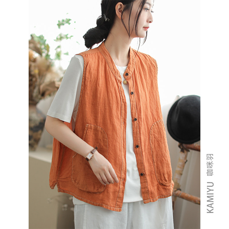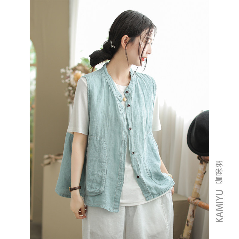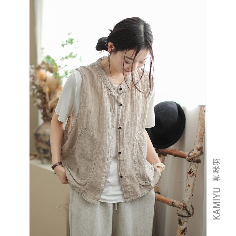 咖咪羽100%亚麻马甲女夏季新款纯色文艺原创显瘦宽松拼接女装马夹