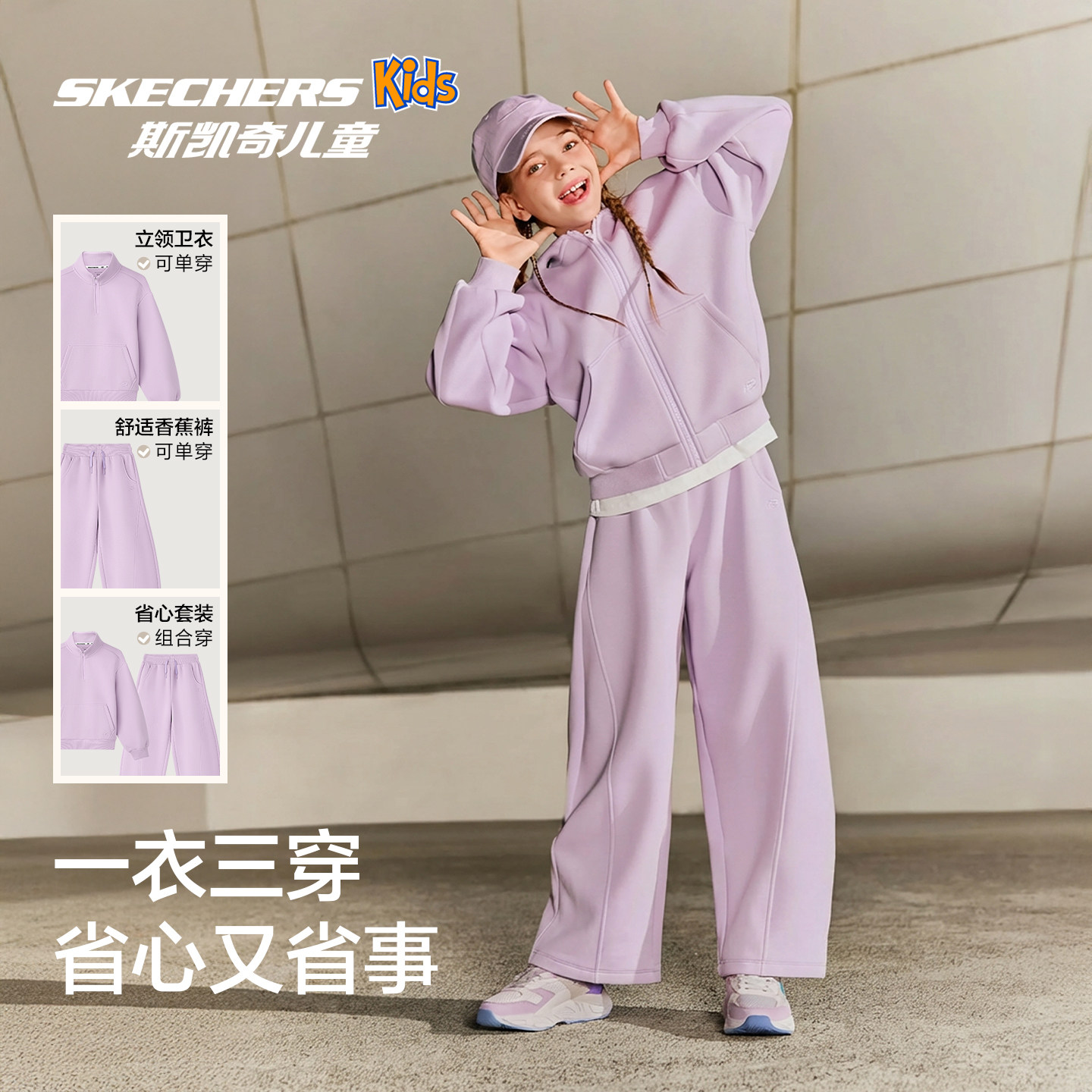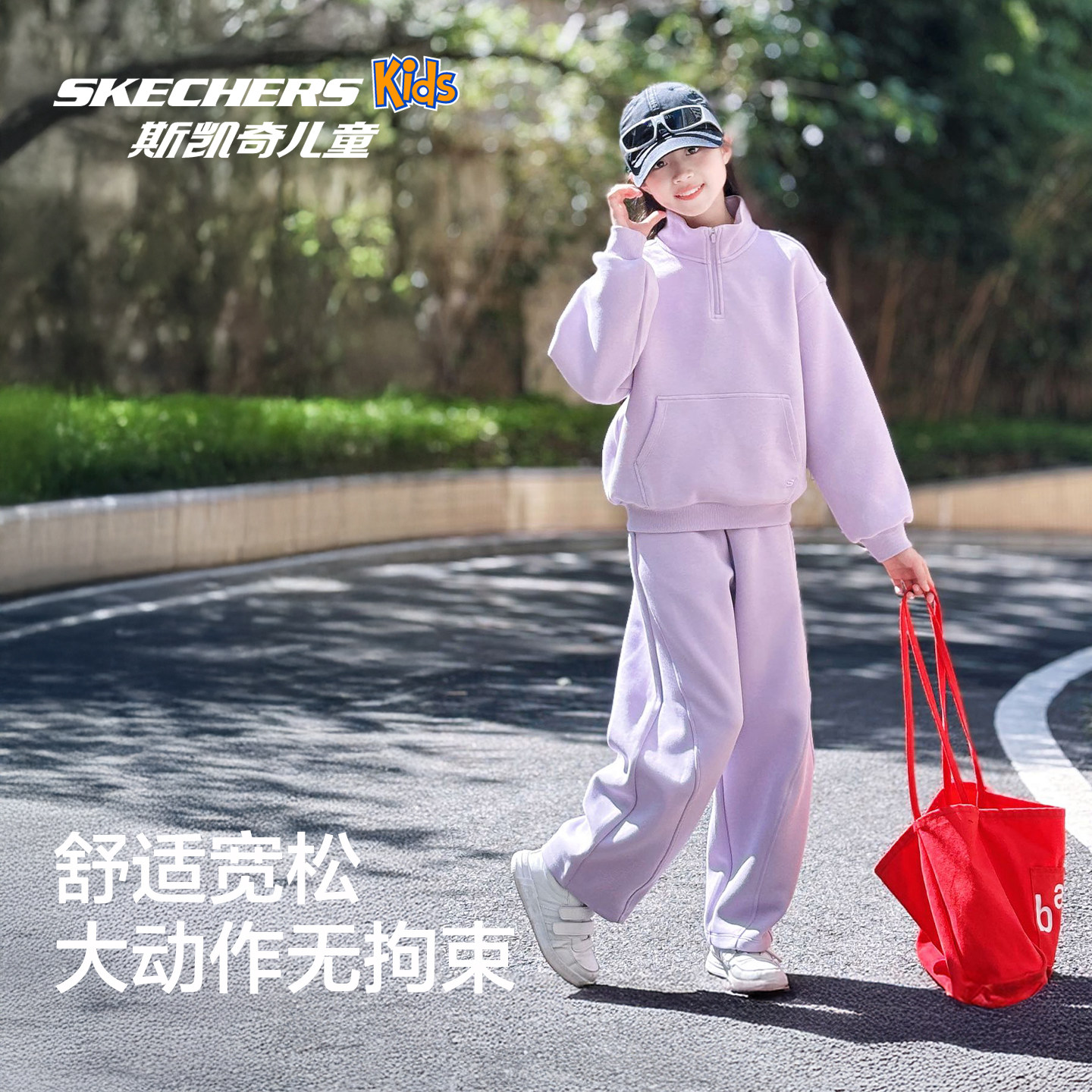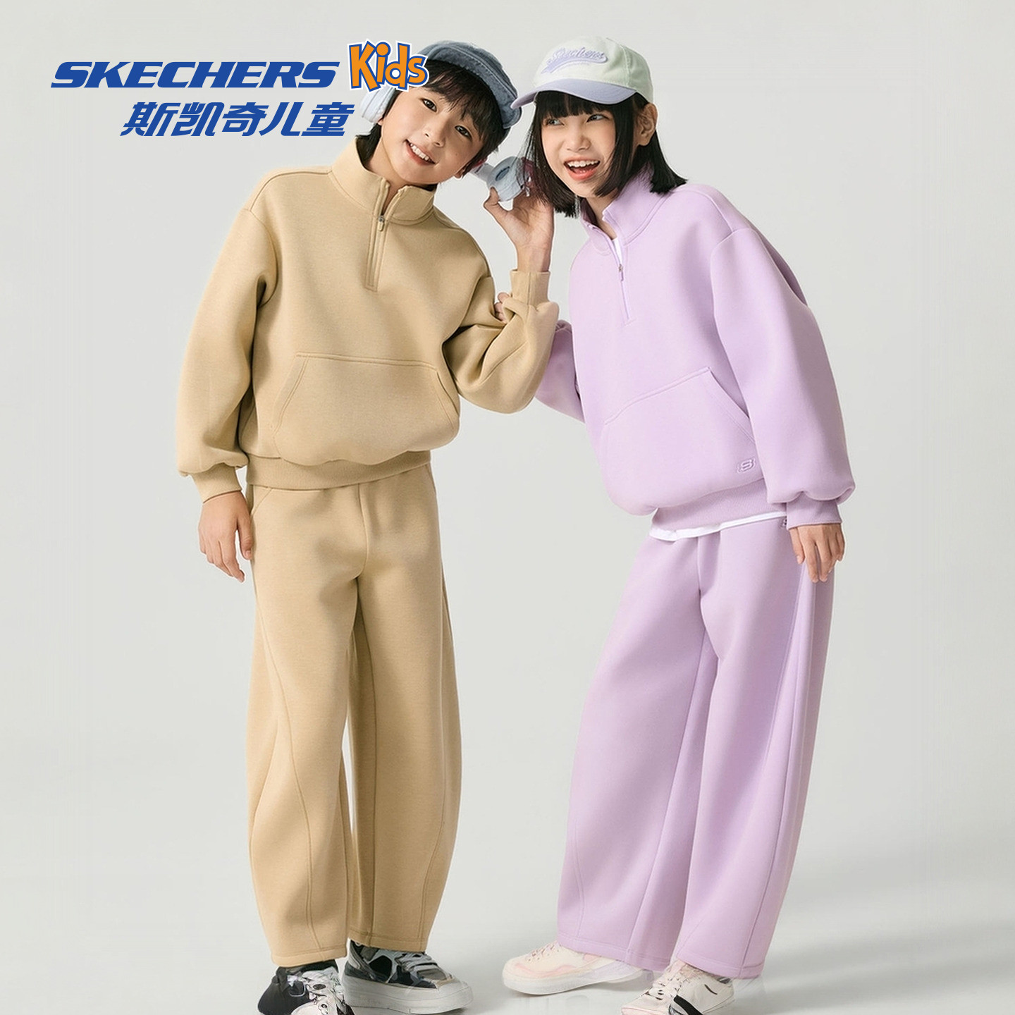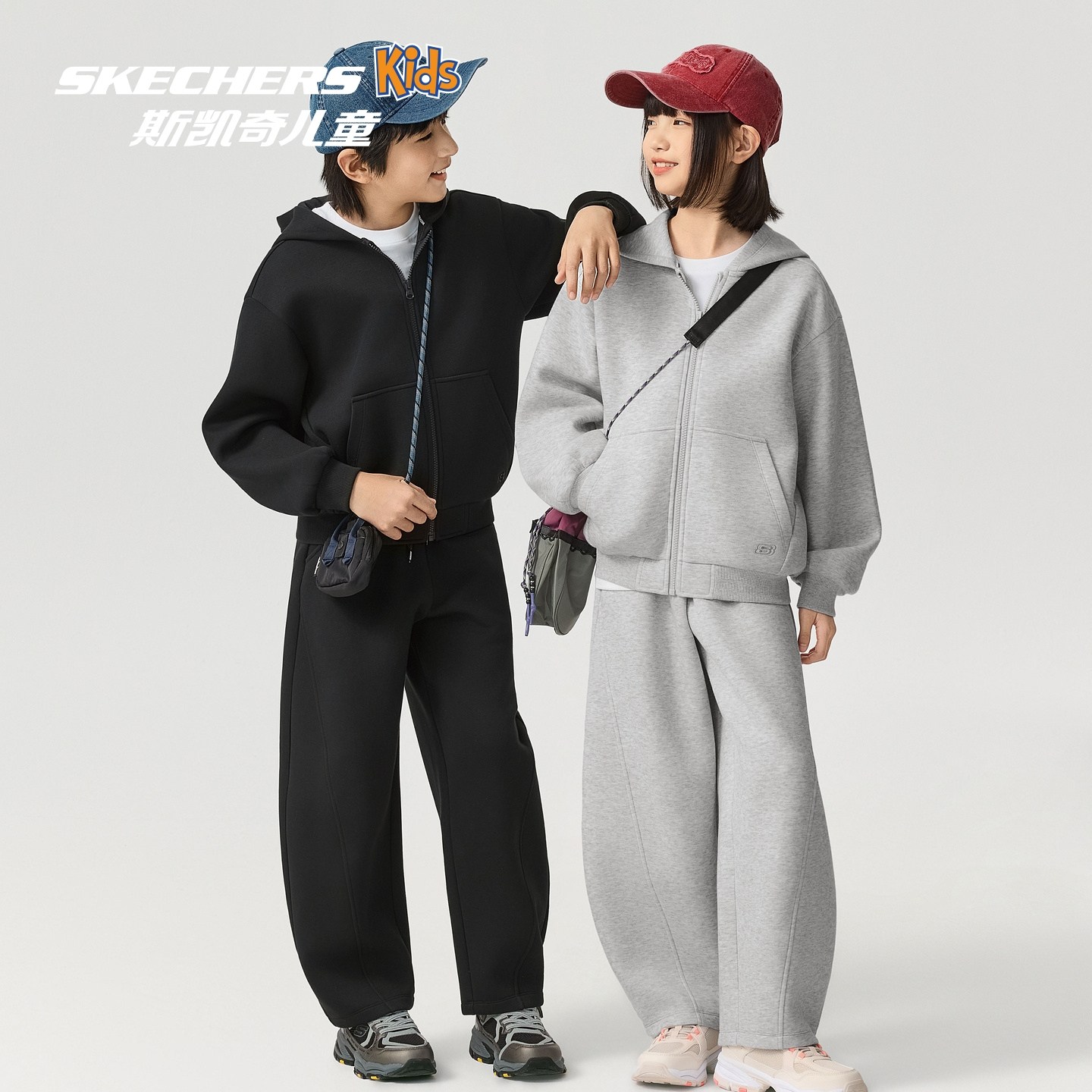 Skechers斯凯奇儿童卫衣长裤秋冬童装中性简约舒适休闲运动套装