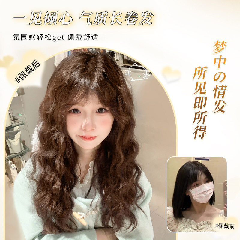 羊毛卷假发女长发秋冬感水波纹蛋蛋卷全头套刘海仿真蓬松卷发法式