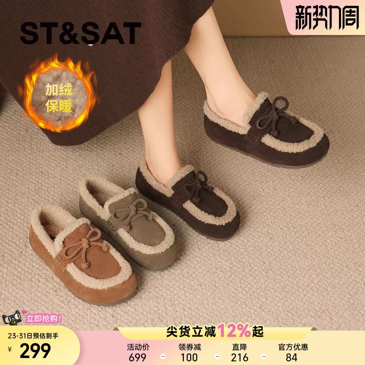 星期六真皮加绒豆豆鞋女鞋2025新款冬季保暖棉鞋一脚蹬毛毛勃肯鞋