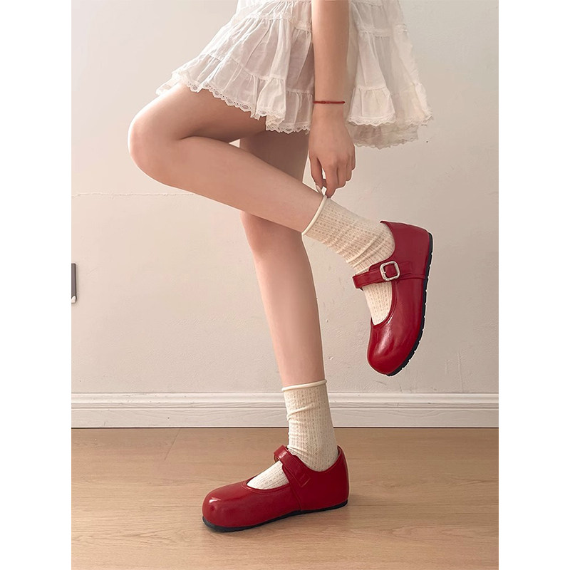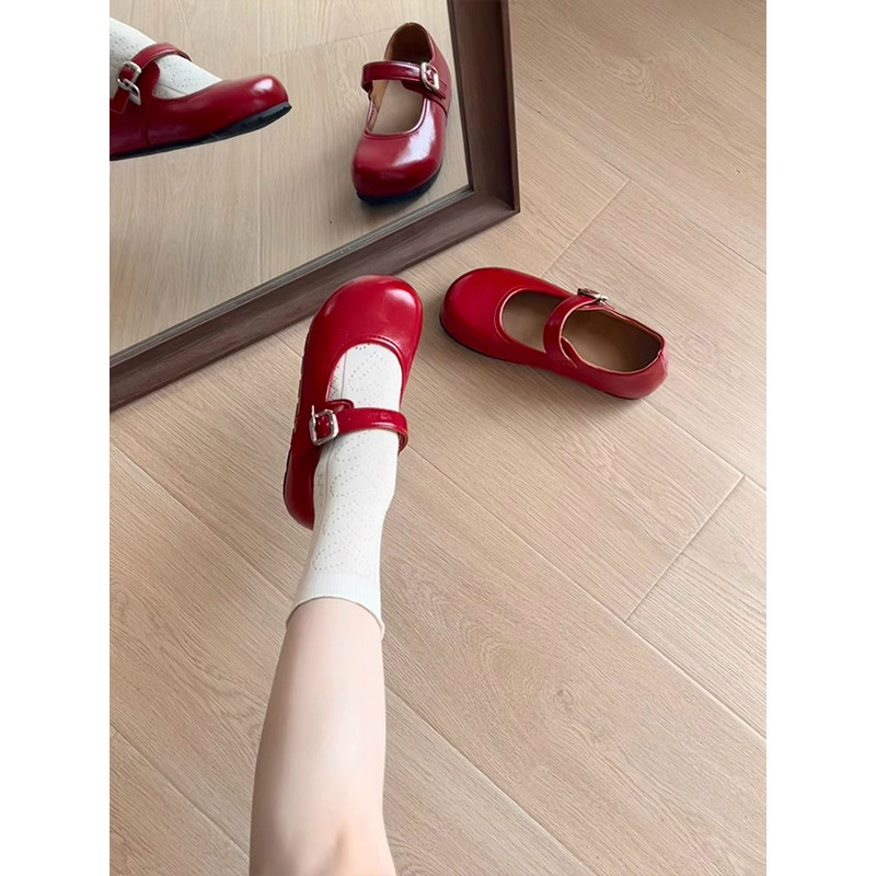 米霏~【羊皮版】红色单鞋女平底法式气质软底芭蕾瓢鞋温柔晚晚鞋