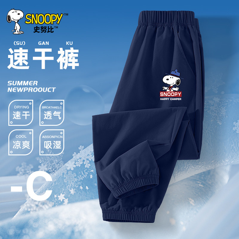 史努比儿童运动裤夏季薄款长裤男大童冰丝速干防蚊裤男童灰色裤子
