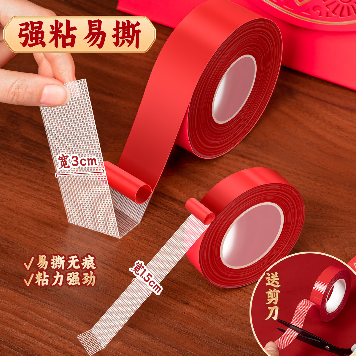 真彩春联无痕胶贴对联专用双面胶无痕贴网格双面胶带神器高粘度透明胶不留痕不伤墙年画喜字结婚婚庆气球装饰
