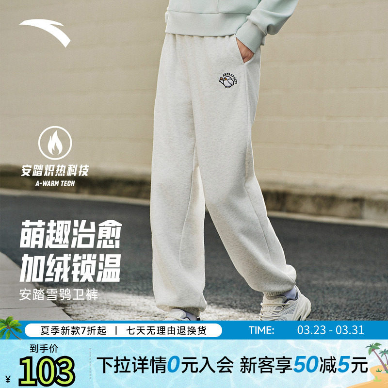 安踏动物星球长裤女款2025新款秋冬加绒保暖休闲裤运动户外束脚裤