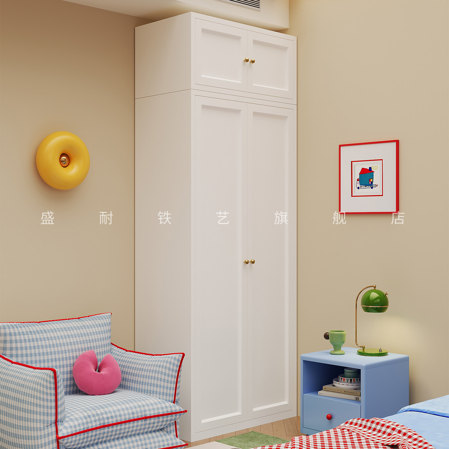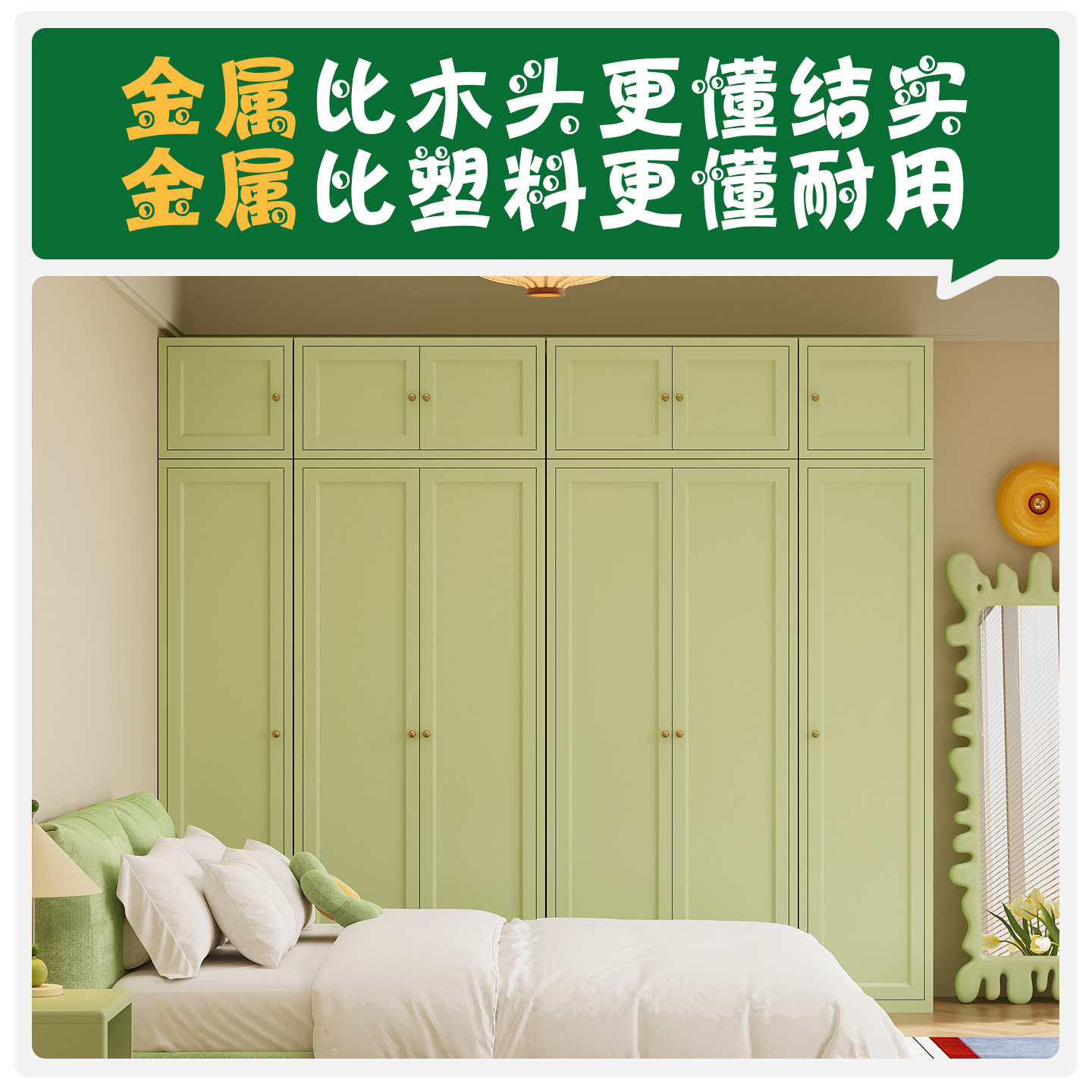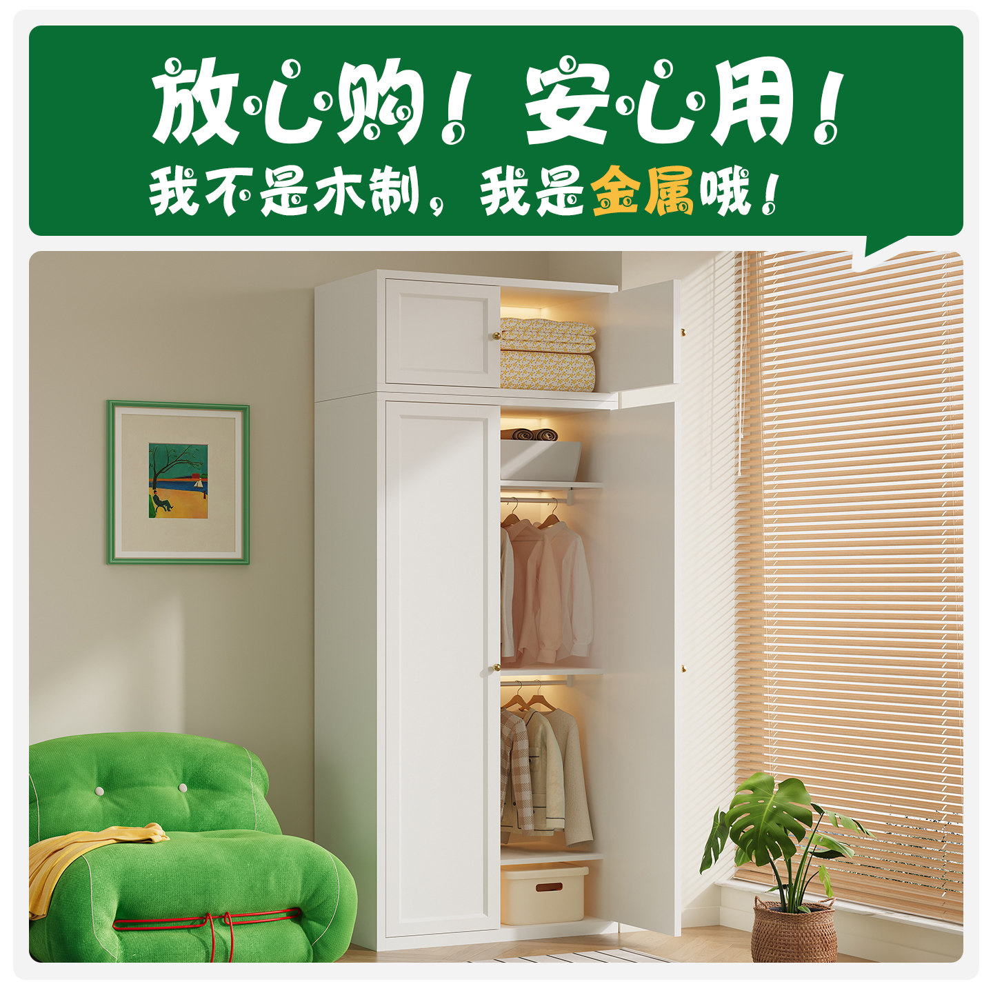奶油风钢制组装小衣柜结实耐用加厚挂衣柜防尘防潮带门收纳储物柜