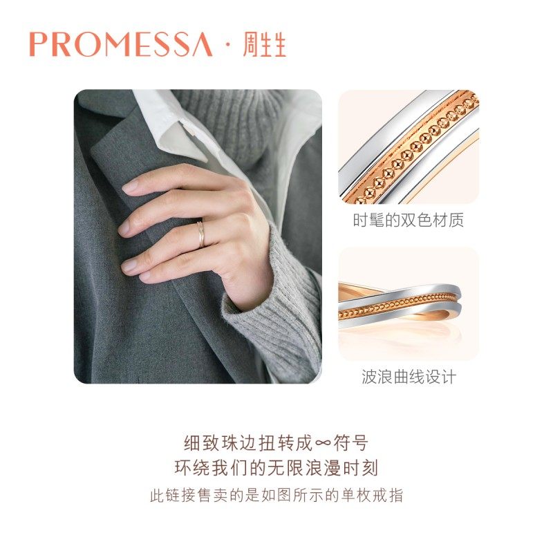 周生生PROMESSA 18K黄金Pt950铂金莫比乌斯环戒指男款92963R